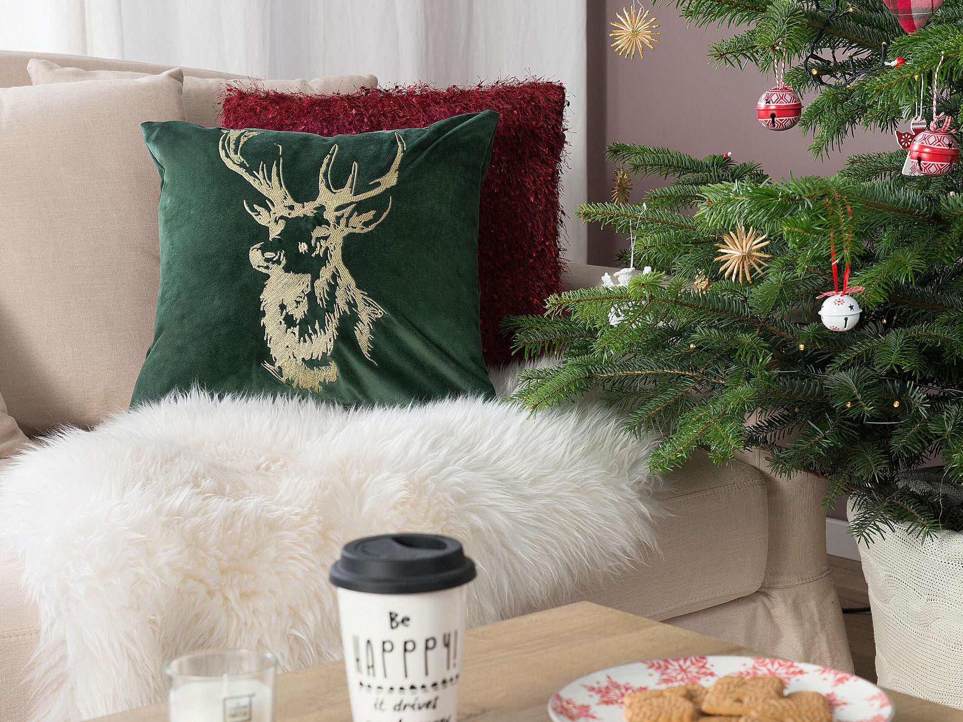 Dekokissen 2er Set BLITZEN Samtstoff 45 x 45 cm Dunkelgrün Weihnachtsmotiv