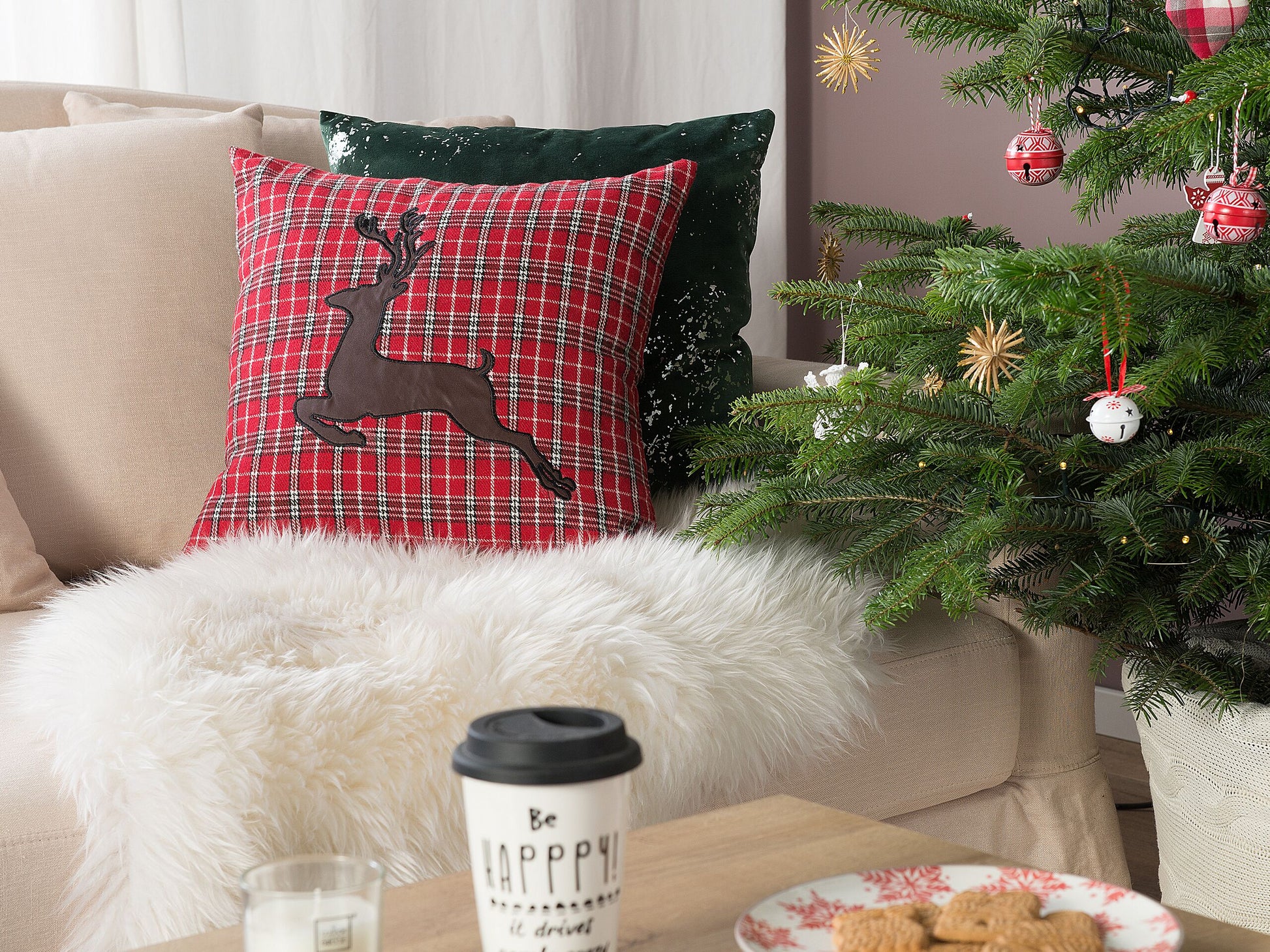 Beschreibung: Ein Wohnaccessoire das in allen Inneneinrichtungen eine gute Figur macht. Das kuschelig weiche Kissen im 2er Set ist dank des rot karierten Bezugs mit verspieltem Tiermuster ein Must-have auf Ihrem Sofa oder Sessel, vor allem während der Advents - und Winterzeit. Es harmoniert besonders schön mit weiteren roten, weissen oder schwarzen Zierkissen, Dekoartikeln, sowie mit dicken Tagesdecken. Material: Polyester. Material Zusammensetzung: 100% Polyester Montage: Benötigt keine Montage Das Angebot beinhaltet: 2 x Zierkissen Höhe: 12 zusätzliche Information: Das Kissen ist vakuumverpackt. Nehmen Sie Ihr Kissen aus der Verpackung heraus und lassen Sie es 24 Stunden lang liegen, bis es seine volle Dichte erreicht. Gestalten: Quadratisch Breite: 45 Tiefe: 45 Art: Dekokissen 2er Set Stil: Retro Allgemeine Farbe: Rot Schatten: Dunkelrot Muster: Weihnachtsmotiv Hauptmaterial: Polyester Füllmaterial: Polyester