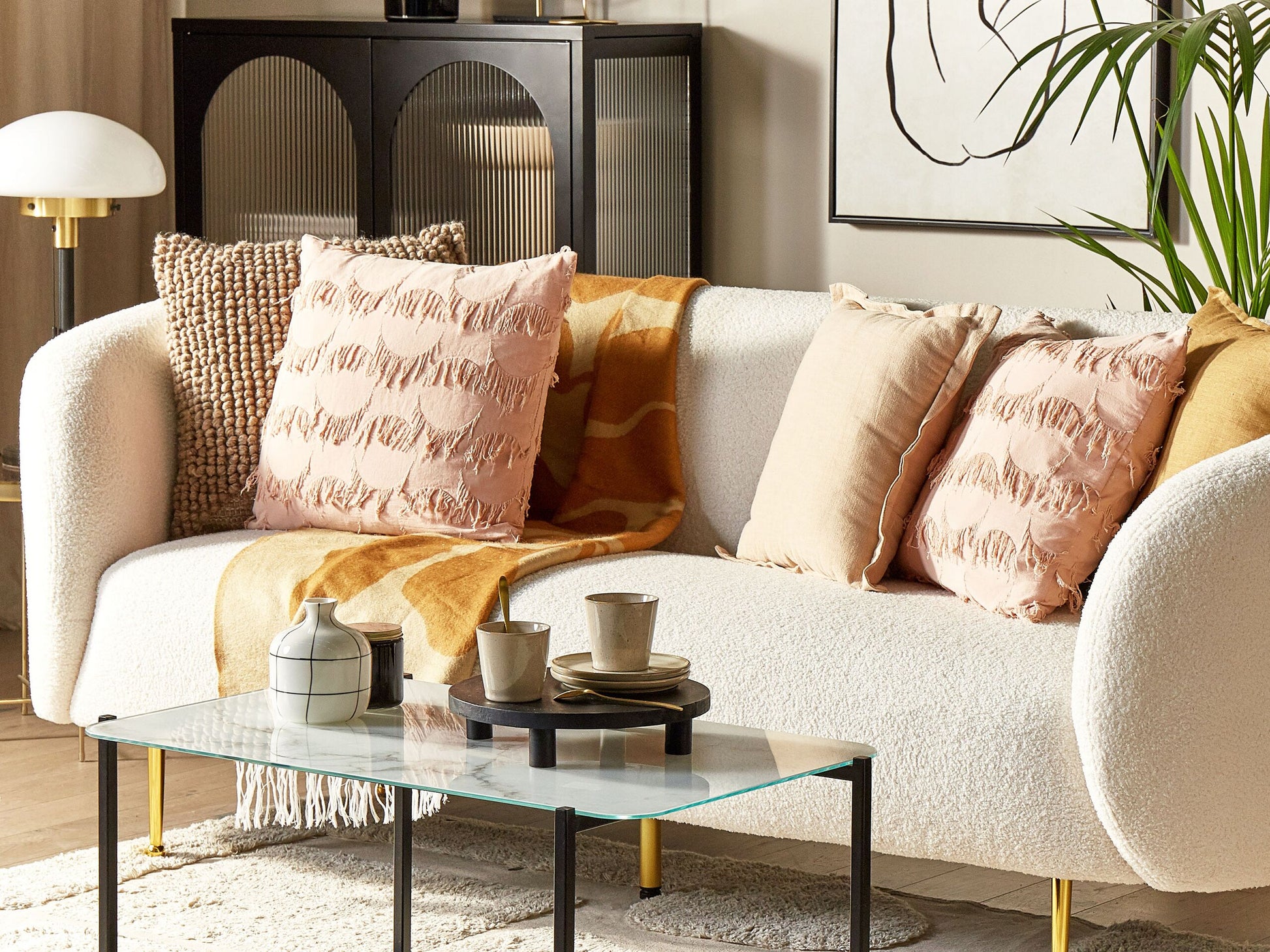 Diese Boho-Kissen in zartem Rosa und mit dekorativen Fransen sind überall wahre Eyecatcher. Sie sind aus hochwertigem Stoff gefertigt, haben einen abnehmbaren Bezug und eine dicke Füllung, dank derer Sie die Kissen nicht nur als Dekoration, sondern auch zum Ausruhen verwenden können. Kombinieren Sie die Dekokissen mit anderen farbenfrohen Textilien mit interessanten Mustern, um Ihr Zuhause etwas lebhafter zu gestalten. Material: Polyester. Material Zusammensetzung: 100% Polyester Montage: Benötigt keine Montage Das Angebot beinhaltet: 2 x Zierkissen Höhe: 10 zusätzliche Information: Das Kissen ist vakuumverpackt. Nehmen Sie Ihr Kissen aus der Verpackung heraus und lassen Sie es 24 Stunden lang liegen, bis es seine volle Dichte erreicht. Gestalten: Quadratisch Breite: 45 Tiefe: 45 Art: Dekokissen 2er Set Stil: Retro Allgemeine Farbe: Rosa Muster: Geometrisches Muster Hauptmaterial: Polyester Füllmaterial: Polyester