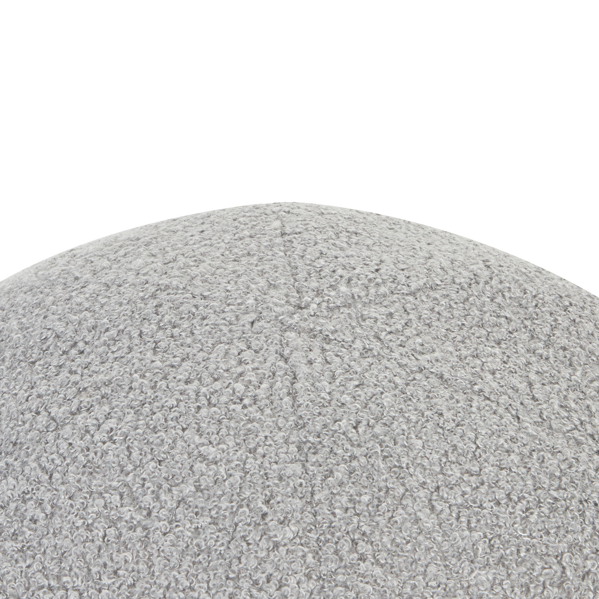 Dieses ballförmige Sofakissen ist genau das Stil-Statement, das Sie auf Ihren Sitzmöbeln noch brauchen. Es besitzt einen gesteppten Bouclé-Bezug und eine flauschige Füllung aus Kunstbaumwollfasern. Mit seiner einzigartigen runden Form und angenehmen Haptik setzt es jedes andere Kissen in den Schatten und sorgt dabei für eine gemütliche Atmosphäre in Ihrem Wohnraum.  Material: Bouclé. Material Zusammensetzung: 100% Polyester Montage: Benötigt keine Montage Das Angebot beinhaltet: 1 x Zierkissen Höhe: 30 zusätzliche Information: Das Kissen ist vakuumverpackt. Nehmen Sie Ihr Kissen aus der Verpackung heraus und lassen Sie es 24 Stunden lang liegen, bis es seine volle Dichte erreicht. Gestalten: Rund Breite: 30 Tiefe: 30 Art: Dekokissen Stil: Modern Allgemeine Farbe: Grau Muster: Ohne Muster Hauptmaterial: Bouclé Füllmaterial: PP Baumwolle