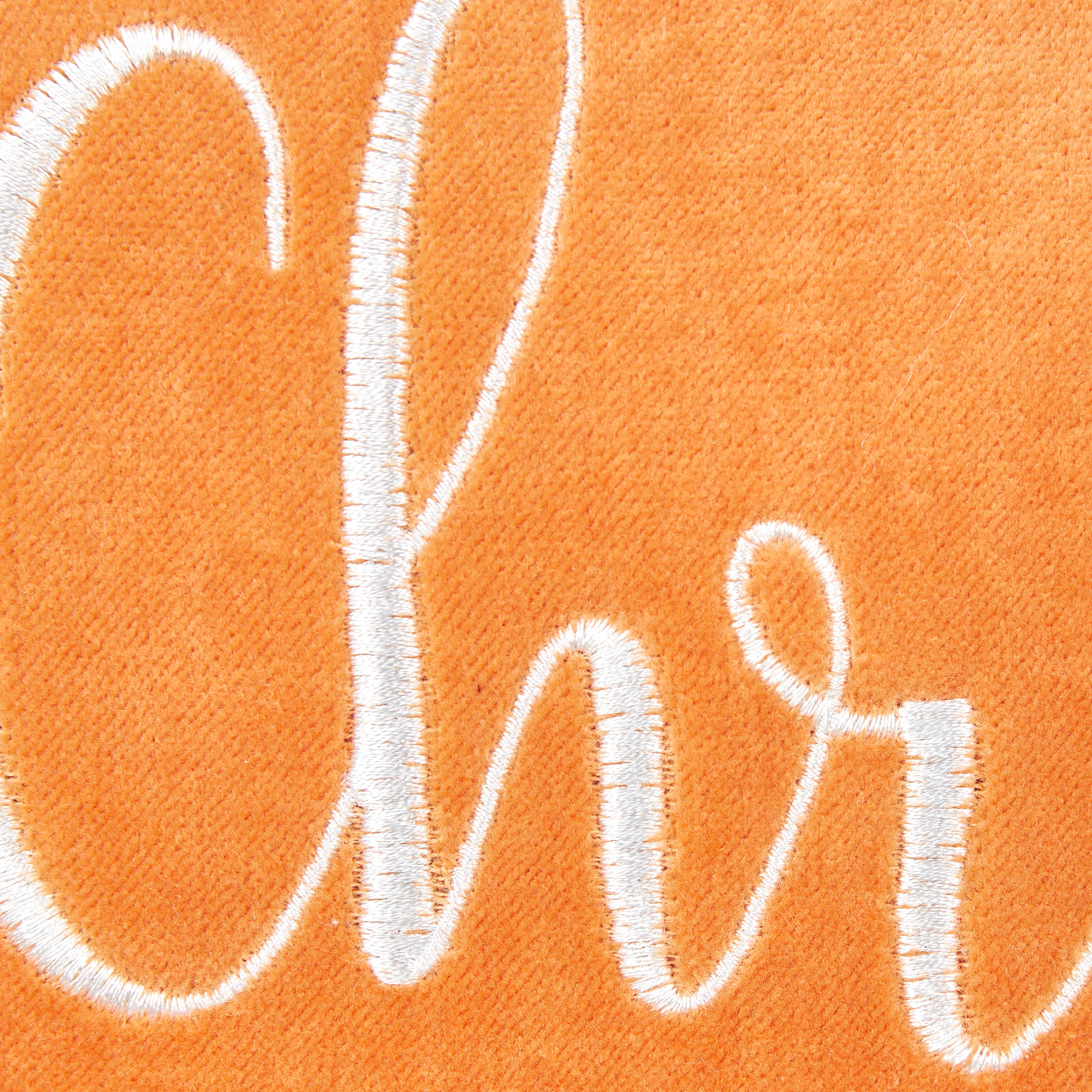 Mit diesem charmanten Zierkissen setzen Sie einen weihnachtlichen Akzent in Ihren Wohnbereichen. Das Kissen ist mit einer weichen Polyester-Füllung versehen und verfügt über einen abnehmbaren Bezug aus geschmeidigem Baumwollsamt. So ist die Kissenhüll sowohl langlebig als auch angenehm weich und pflegeleicht. Die Kissen-Vorderseite ist mit einem weissen Schriftzug bestickt und an den Seiten mit Quasten aufgeppept. Dank seiner gemütlichen Ausstrahlung ist das Kissen eine grossartige Ergänzung für jeden Wohnstil. Material: Samtstoff. Material Zusammensetzung: 100% Baumwolle Montage: Benötigt keine Montage Das Angebot beinhaltet: 1 x Zierkissen Höhe: 10 zusätzliche Information: Bitte beachten Sie, dass Samtstoff unter verschiedenen Lichtverhältnissen eine andere Optik haben kann – das Material schimmert bei Tageslicht stärker und wirkt bei künstlicher Beleuchtung in Innenräumen eher gedämpft. Aufgrund der glatten, hochdichten Struktur des Gewebes kann sein Farbton auch variieren, wenn man mit der Hand in verschiedene Richtungen und Winkel über den Stoff fährt. Um den Farbton auszugleichen und Druckstellen zu vermeiden, sollte der Webstoff sanft mit einer offenen Handfläche in eine Richtung gestrichen, mit einem feuchten Tuch abgewischt oder einem Dampfbügeleisen gebügelt werden., Da jedes Produkt handgefertigt wird, kann es zu kleineren Abweichungen in der Farbe und der äusseren Struktur kommen. Diese Abweichungen stellen keinen Qualitätsmangel dar, sondern sind eine warentypische Eigenschaft. Gestalten: Rechteckig Breite: 50 Tiefe: 30 Art: Dekokissen Stil: Modern Allgemeine Farbe: Orange Muster: Weihnachtsmotiv Hauptmaterial: Samtstoff Füllmaterial: Polyester