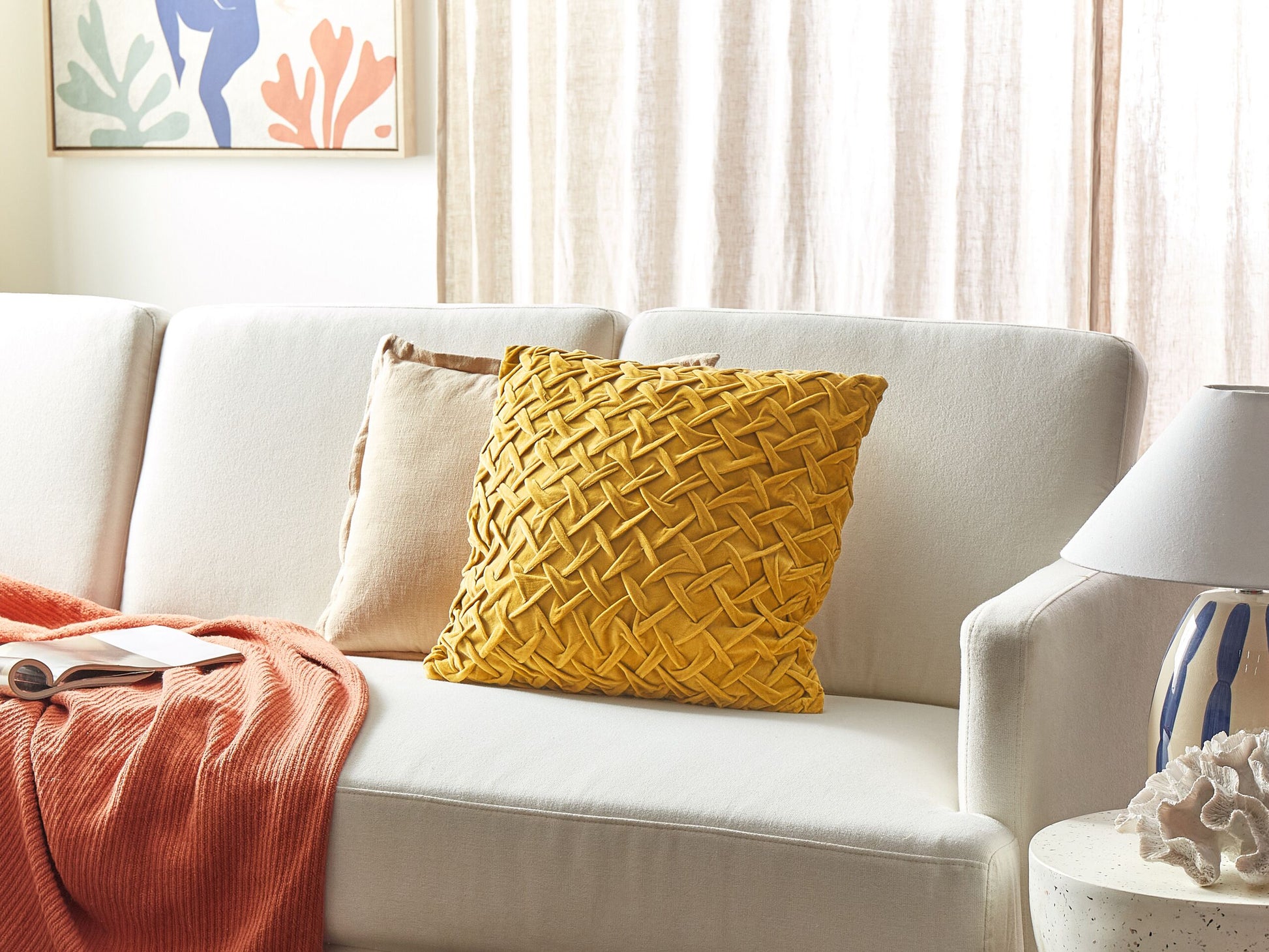 Dieses quadratische, weiche Kissen ist in jedem Zuhause ein echter Hingucker. Es ist aus Samt handgefertigt und somit langlebig und pflegeleicht zugleich. Zudem ist das Kissen dank des abnehmbaren Bezugs leicht zu reinigen. Die zeitlose gelbe Farbe macht es zu einem idealen Begleiter für moderne Wohnräume. Material: Samtstoff. Material Zusammensetzung: 100% Baumwolle Montage: Benötigt keine Montage Das Angebot beinhaltet: 1 x Zierkissen Höhe: 5 zusätzliche Information: Das Kissen ist vakuumverpackt. Nehmen Sie Ihr Kissen aus der Verpackung heraus und lassen Sie es 24 Stunden lang liegen, bis es seine volle Dichte erreicht., Bitte beachten Sie, dass Samtstoff unter verschiedenen Lichtverhältnissen eine andere Optik haben kann – das Material schimmert bei Tageslicht stärker und wirkt bei künstlicher Beleuchtung in Innenräumen eher gedämpft. Aufgrund der glatten, hochdichten Struktur des Gewebes kann sein Farbton auch variieren, wenn man mit der Hand in verschiedene Richtungen und Winkel über den Stoff fährt. Um den Farbton auszugleichen und Druckstellen zu vermeiden, sollte der Webstoff sanft mit einer offenen Handfläche in eine Richtung gestrichen, mit einem feuchten Tuch abgewischt oder einem Dampfbügeleisen gebügelt werden., Da jedes Produkt handgefertigt wird, kann es zu kleineren Abweichungen in der Farbe und der äusseren Struktur kommen. Diese Abweichungen stellen keinen Qualitätsmangel dar, sondern sind eine warentypische Eigenschaft. Gestalten: Quadratisch Breite: 45 Tiefe: 45 Art: Dekokissen Stil: Modern Allgemeine Farbe: Gelb Muster: Kein Muster Hauptmaterial: Samtstoff Füllmaterial: Polyester