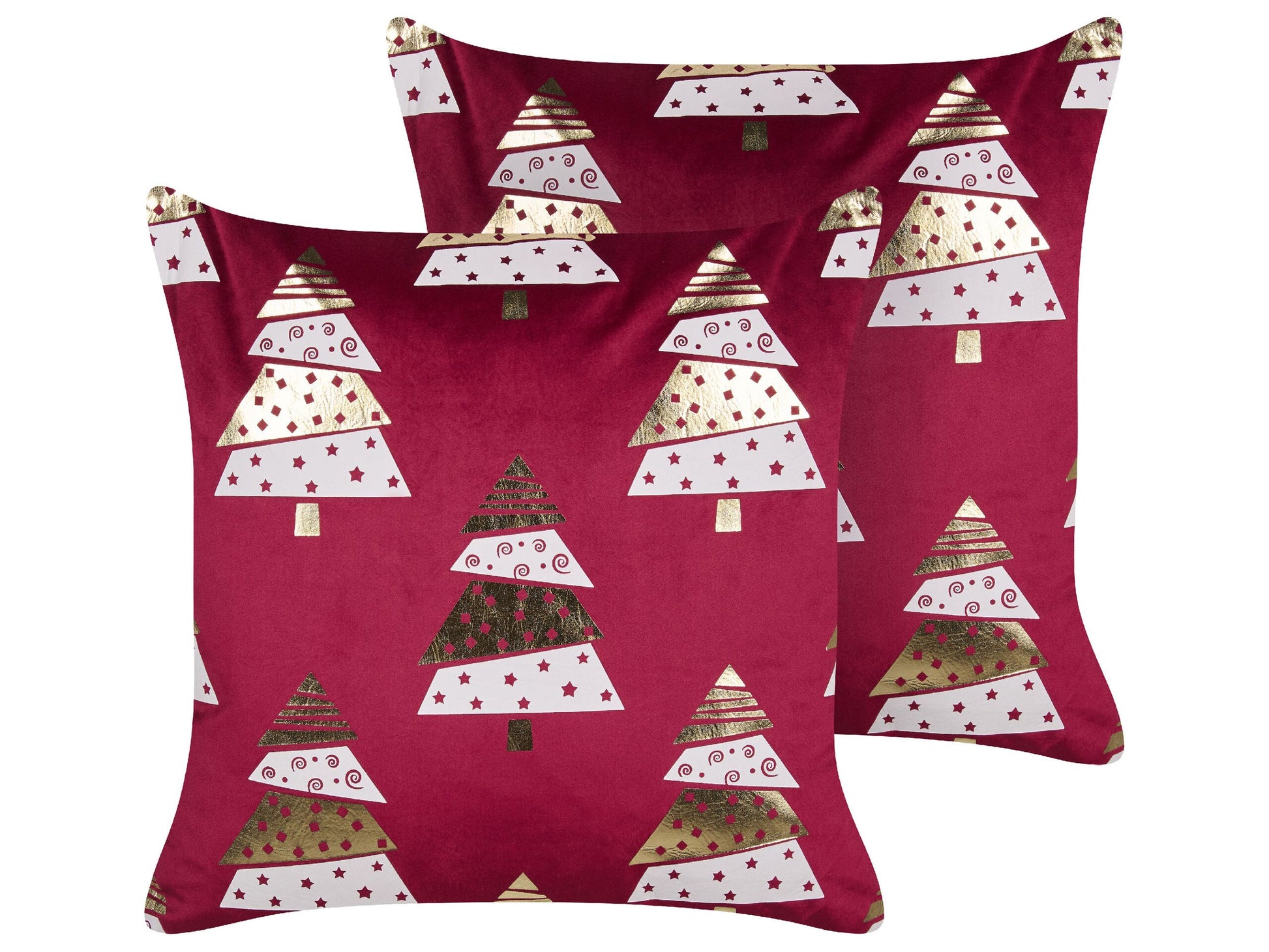 Dekokissen 2er Set GOLDSPRUCE Samtstoff 45 x 45 cm Rot Weihnachtsmotiv
