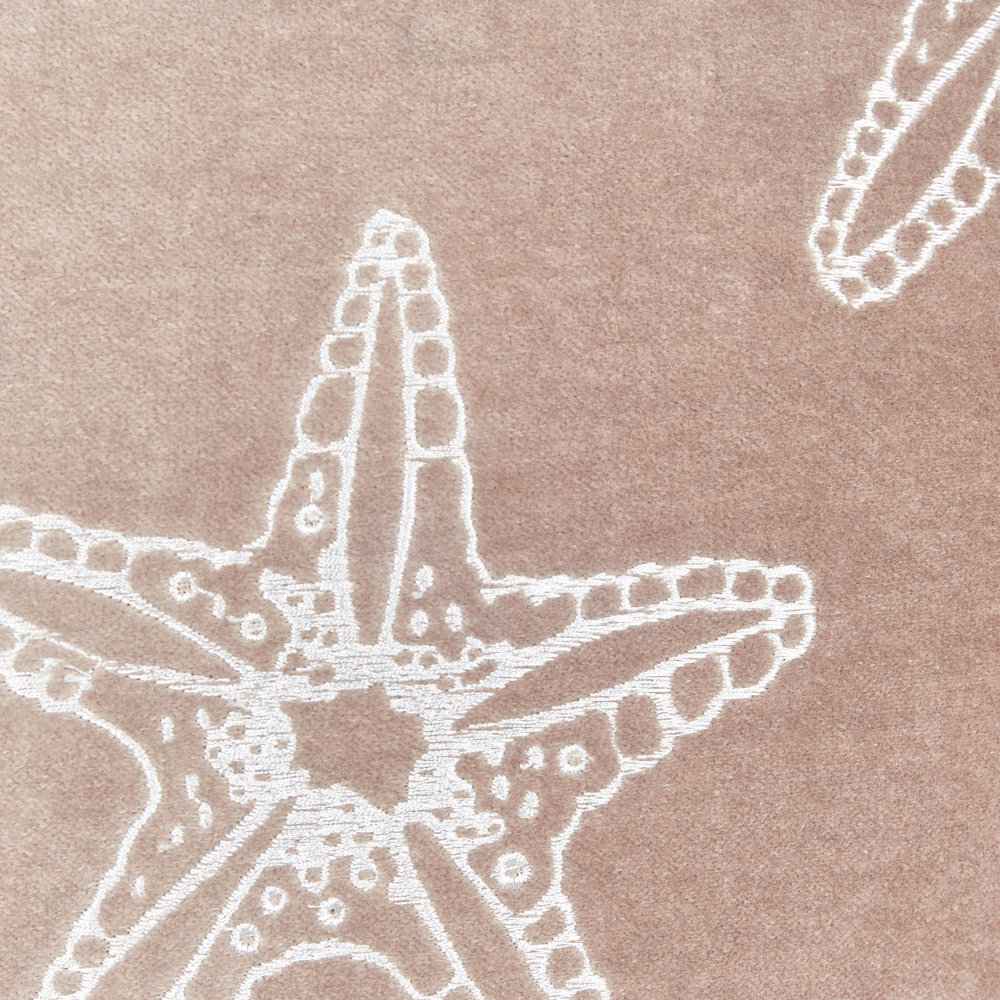 Mit diesem bezaubernden Sofakissen und seinem Seesternmotiv bringen Sie den besonderen Charme der Tiefsee in Ihr Zuhause. Die Vorderseite des Kissenbezugs besteht aus geschmeidigem Baumwollsamt und ist mit weissen Stickereien versehen. Die Kissenrückseite ist aus weicher Baumwolle gefertigt und in einer wunderschönen Leinenoptik gehalten. Das edle Design und die luxuriöse Verarbeitung des Zierkissens werden durch die zusätzliche Paspel unterstrichen. Die tägliche Reinigung wird durch den abnehmbaren Bezug erleichtert, während das zeitgemässe Motiv und der helle Farbton ideal mit jedem Interieur harmoniert.  Material: Samtstoff. Material Zusammensetzung: 100% Baumwolle Montage: Benötigt keine Montage Das Angebot beinhaltet: 1 x Zierkissen Höhe: 10 zusätzliche Information: Das Kissen ist vakuumverpackt. Nehmen Sie Ihr Kissen aus der Verpackung heraus und lassen Sie es 24 Stunden lang liegen, bis es seine volle Dichte erreicht., Bitte beachten Sie, dass Samtstoff unter verschiedenen Lichtverhältnissen eine andere Optik haben kann – das Material schimmert bei Tageslicht stärker und wirkt bei künstlicher Beleuchtung in Innenräumen eher gedämpft. Aufgrund der glatten, hochdichten Struktur des Gewebes kann sein Farbton auch variieren, wenn man mit der Hand in verschiedene Richtungen und Winkel über den Stoff fährt. Um den Farbton auszugleichen und Druckstellen zu vermeiden, sollte der Webstoff sanft mit einer offenen Handfläche in eine Richtung gestrichen, mit einem feuchten Tuch abgewischt oder einem Dampfbügeleisen gebügelt werden. Gestalten: Quadratisch Breite: 45 Tiefe: 45 Art: Dekokissen Stil: Modern Allgemeine Farbe: Rosa Schatten: Pastellrosa Muster: Blumenmuster Hauptmaterial: Samtstoff Füllmaterial: Polyester