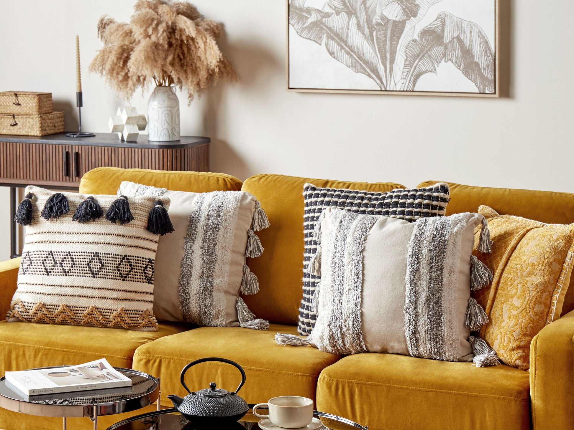 Dieses Kissen mit Streifenmuster und Fransen verleiht Ihrem Interieur einen Hauch von Boho und Vintage-Stil. Dank seines Designs ist das Kissen eine stilvolle und praktische Ergänzung für jeden Raum. Das Kissen aus umweltfreundlicher Baumwolle ist dick gefüllt und sorgt für absoluten Komfort. Material: Baumwolle. Material Zusammensetzung: 100% Baumwolle Montage: Benötigt keine Montage Das Angebot beinhaltet: 1 x Zierkissen Höhe: 10 Gestalten: Quadratisch Breite: 45 Tiefe: 45 Art: Dekokissen Allgemeine Farbe: Grau Muster: Streifenmuster Hauptmaterial: Baumwolle Füllmaterial: Polyester