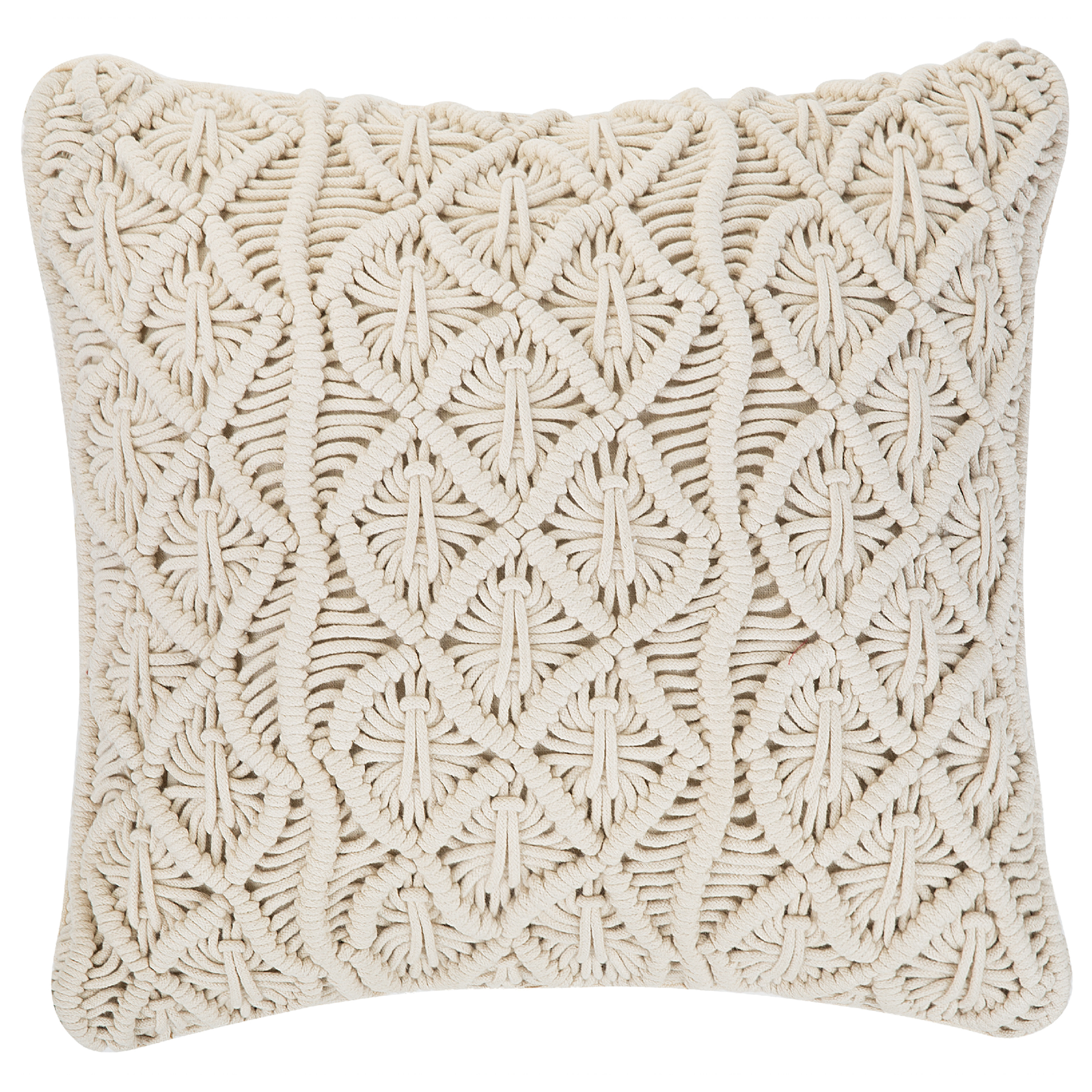 Die ausgezeichnete Ästhetik dieses Dekokissens im 2er Set wird jeden Gast begeistern. Das liebevoll gefertigtes, gestrickte Muster macht dieses Produkt zu einem Wohnaccessoire, das jedem Interieur ein schickes Ambiente verleihen wird. Dank der Herstellung aus hochwertigen Materialien ist das Kissen nicht nur dekorativ, sondern auch langlebig. Zögern Sie nicht, wenn Sie Qualität zu schätzen wissen. Material: Baumwolle. Material Zusammensetzung: 100% Baumwolle Montage: Benötigt keine Montage Das Angebot beinhaltet: 2 x Zierkissen Höhe: 10 zusätzliche Information: Das Kissen ist vakuumverpackt. Nehmen Sie Ihr Kissen aus der Verpackung heraus und lassen Sie es 24 Stunden lang liegen, bis es seine volle Dichte erreicht., Da jedes Produkt handgefertigt wird, kann es zu kleineren Abweichungen in der Farbe und der äusseren Struktur kommen. Diese Abweichungen stellen keinen Qualitätsmangel dar, sondern sind eine warentypische Eigenschaft. Gestalten: Quadratisch Breite: 45 Tiefe: 45 Art: Dekokissen 2er Set Stil: Boho Allgemeine Farbe: Beige Schatten: Hellbeige Muster: Geometrisches Muster Hauptmaterial: Baumwolle Füllmaterial: Polyester