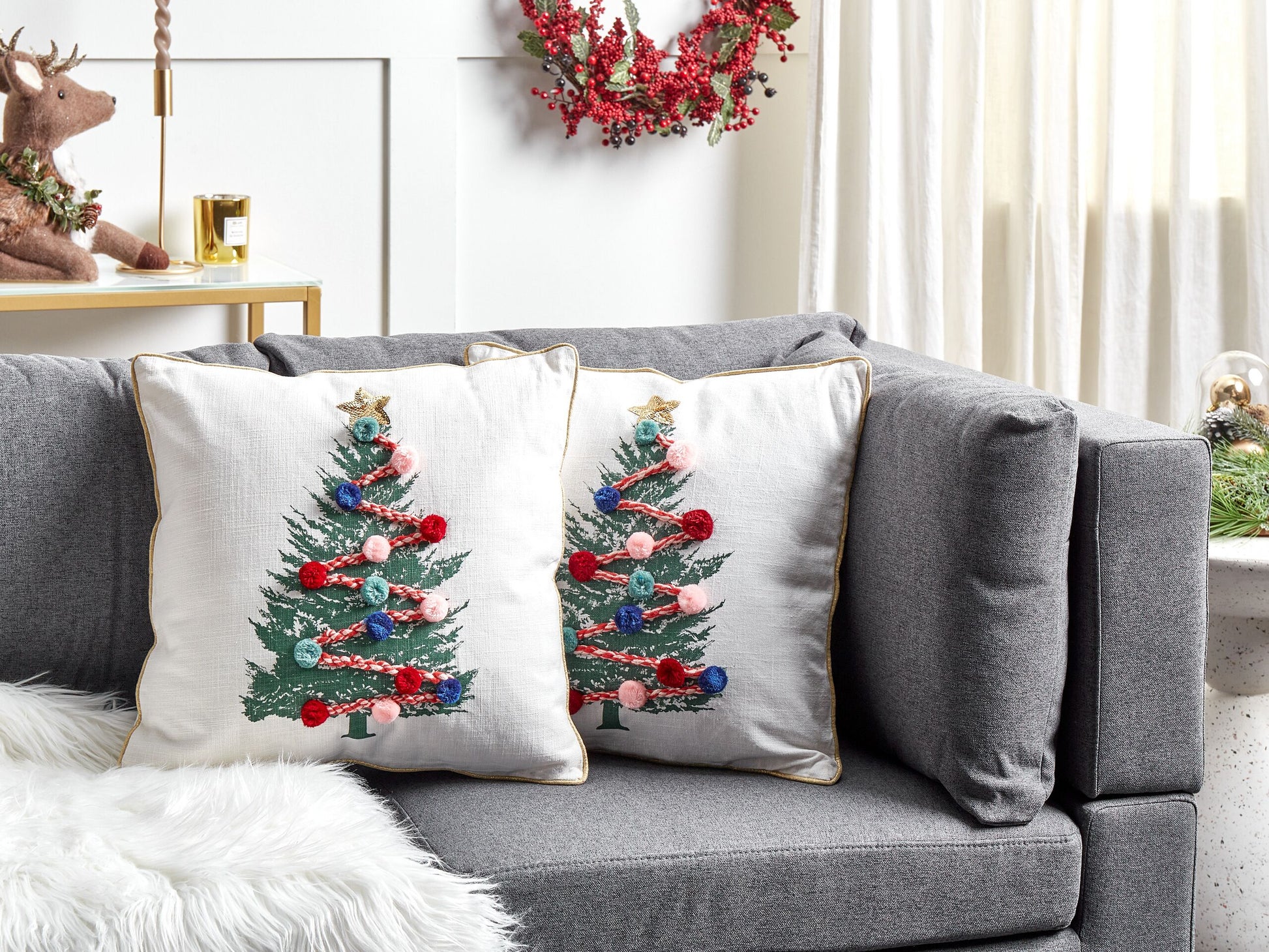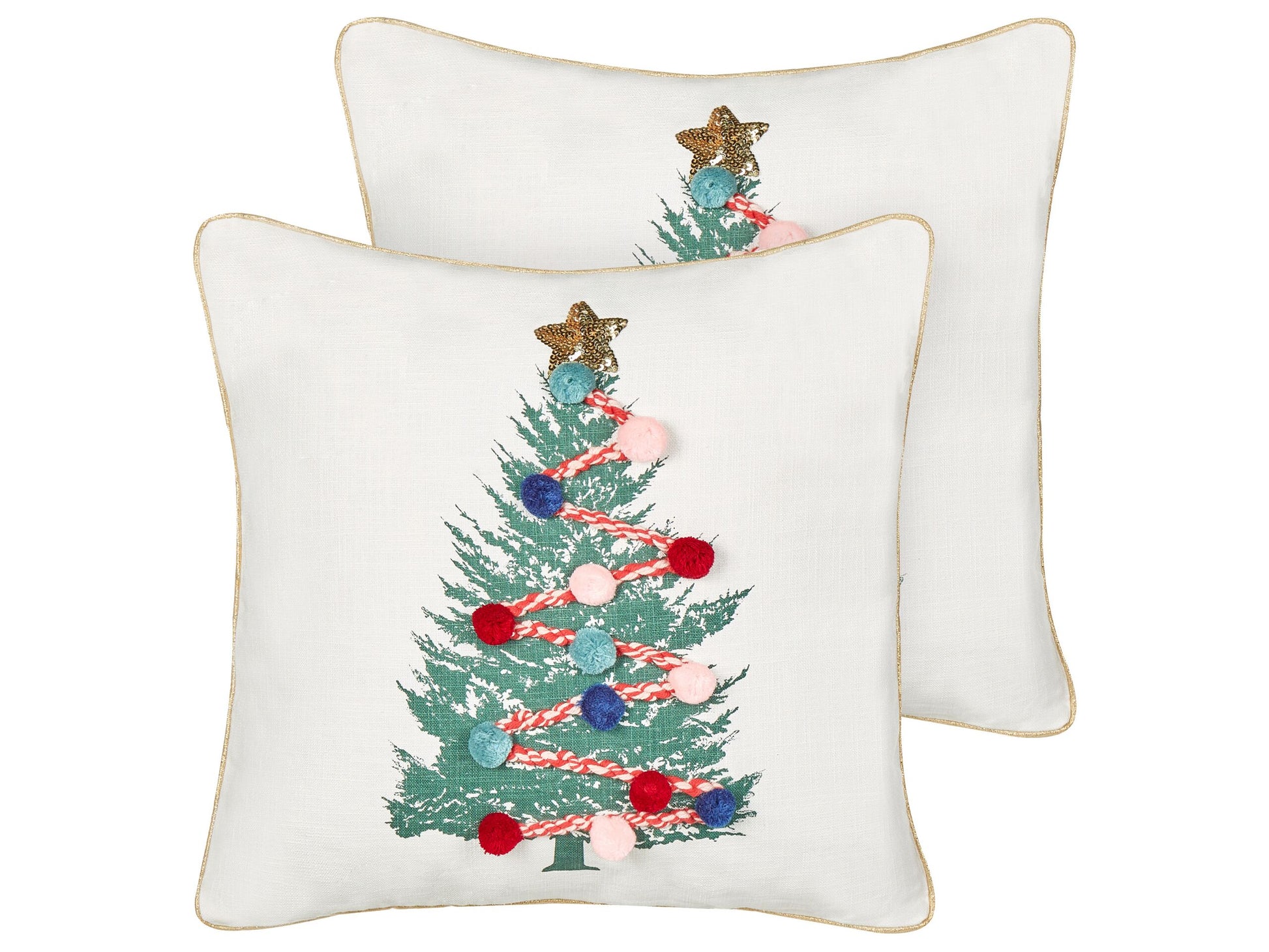 Dekokissen 2er Set EPISCIA Baumwolle 45 x 45 cm Weiss Weihnachtsmotiv