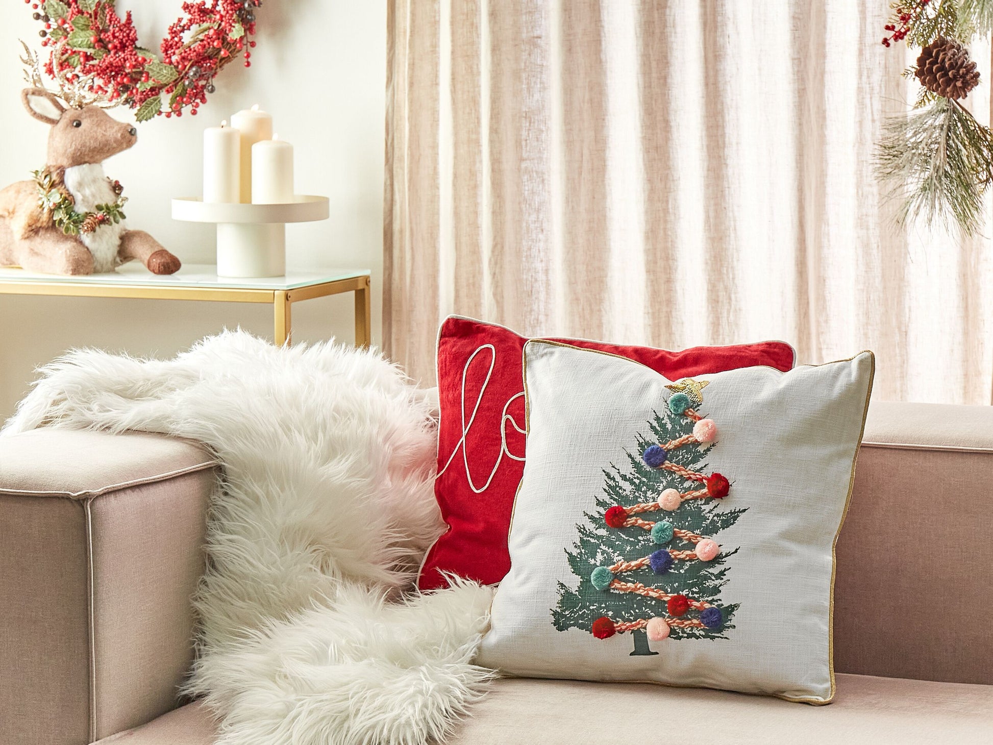 Dekokissen EPISCIA Baumwolle 45 x 45 cm Weiss Weihnachtsmotiv