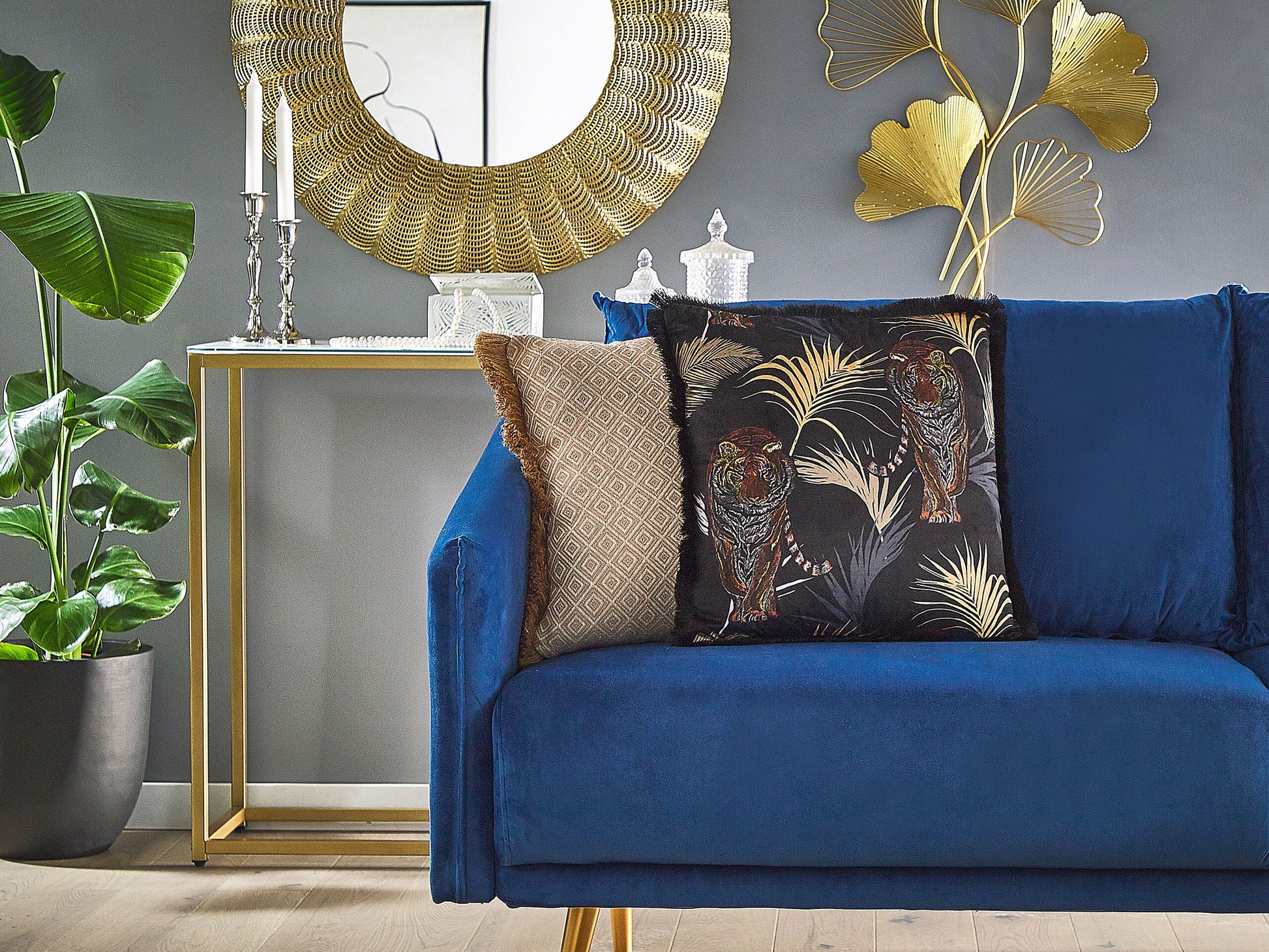Ein Accessoire das jede Couch und jedes Bett mit seinem auffälligen Tigermuster bereichert. Die hübsch kontrastierenden Farben und das weiche Innenkissen erfüllen beides - Funktionalität und stilvolles Design. Zusammen mit anderen Dekoartikeln in Dschungeloptik wird im Raum eine einladende Atmosphäre mit botanischem Touch geschaffen. Material: Samtstoff. Material Zusammensetzung: 100% Polyester Montage: Benötigt keine Montage Das Angebot beinhaltet: 2 x Zierkissen Höhe: 12 zusätzliche Information: Das Kissen ist vakuumverpackt. Nehmen Sie Ihr Kissen aus der Verpackung heraus und lassen Sie es 24 Stunden lang liegen, bis es seine volle Dichte erreicht. Gestalten: Quadratisch Breite: 45 Tiefe: 45 Art: Dekokissen 2er Set Stil: Modern Allgemeine Farbe: Schwarz Muster: Tiermuster Hauptmaterial: Samtstoff Füllmaterial: Schaumstoff
