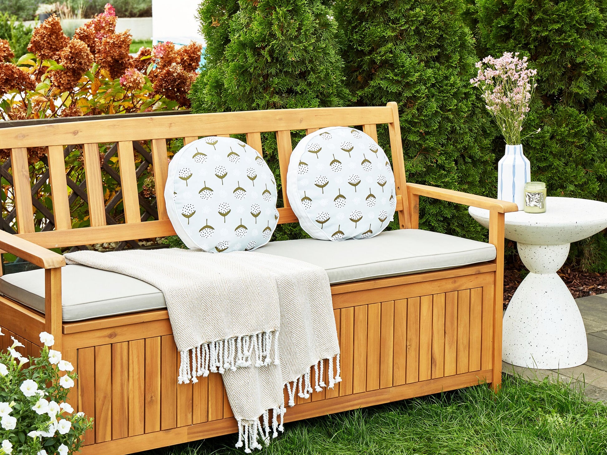 Ob Gartenbank, Hängematte oder Gartenlounge, diese modernen Zierkissen verwandeln mit ihren dezenten Bezügen jeden Bereich in eine Ruheoase. Sie zeichnen sich mit einem geometrisch angeordneten Löwenzahnmotiv und ihren pastellfarbenen, gedämpften Farbtönen aus. Beide Dekokissen verfügen über eine angenehm weiche Polyester-Füllung. Mit ihren abnehmbaren, wasserabweisenden Bezügen definieren diese Kissen den Komfort im Freien neu und trotzen dabei mühelos den Elementen.   Material: Polyester. Material Zusammensetzung: 100% Polyester Montage: Benötigt keine Montage Das Angebot beinhaltet: 2 x Gartenkissen Höhe: 10 zusätzliche Information: Das Kissen ist vakuumverpackt. Nehmen Sie Ihr Kissen aus der Verpackung heraus und lassen Sie es 24 Stunden lang liegen, bis es seine volle Dichte erreicht. Gestalten: Rund Breite: 40 Tiefe: 40 Art: Kissen 2er Set Stil: Modern Allgemeine Farbe: Grün Schatten: Hellgrün Muster: Blumenmuster Hauptmaterial: Polyester Füllmaterial: Polyester