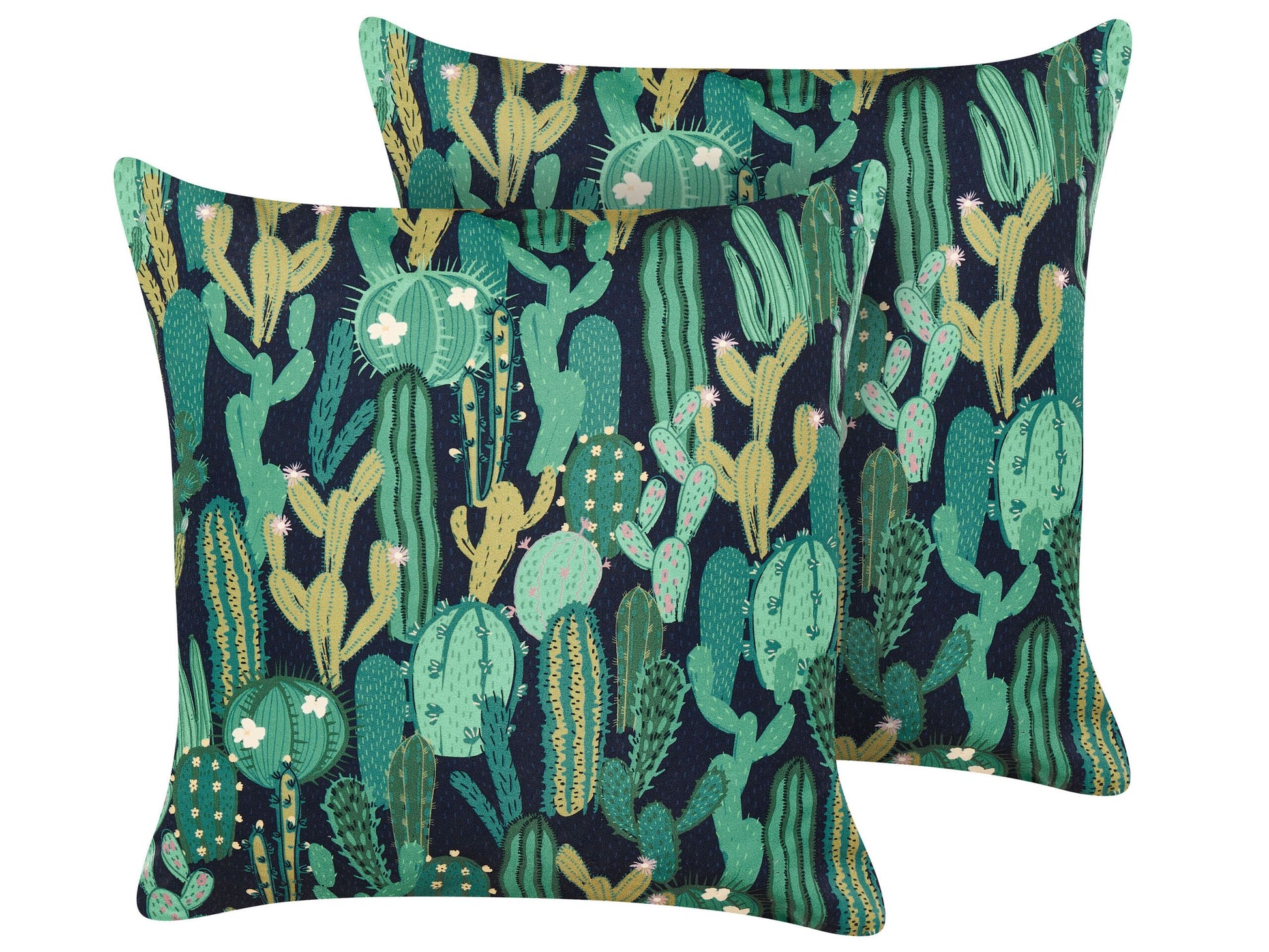 Verleihen Sie Ihrer Einrichtung mit diesen beiden Kissen mit trendigem Kaktusmotiv einen Touch Wüstenflair. Sie eignen sich perfekt für Innen- und Aussenbereiche und sind für zusätzlichen Komfort mit strapazierfähigem Polyester gefüllt. Dank der abnehmbaren und handwaschbaren Bezüge wird die Pflege ganz einfach.  Material: Polyester. Material Zusammensetzung: 100% Polyester Montage: Benötigt keine Montage Das Angebot beinhaltet: 2 x Gartenkissen Höhe: 10 zusätzliche Information: Das Kissen ist vakuumverpackt. Nehmen Sie Ihr Kissen aus der Verpackung heraus und lassen Sie es 24 Stunden lang liegen, bis es seine volle Dichte erreicht. Gestalten: Quadratisch Breite: 45 Tiefe: 45 Art: Gartenkissen 2er Set Stil: Modern Allgemeine Farbe: Grün Muster: Pflanzenmuster Hauptmaterial: Polyester Füllmaterial: Polyester