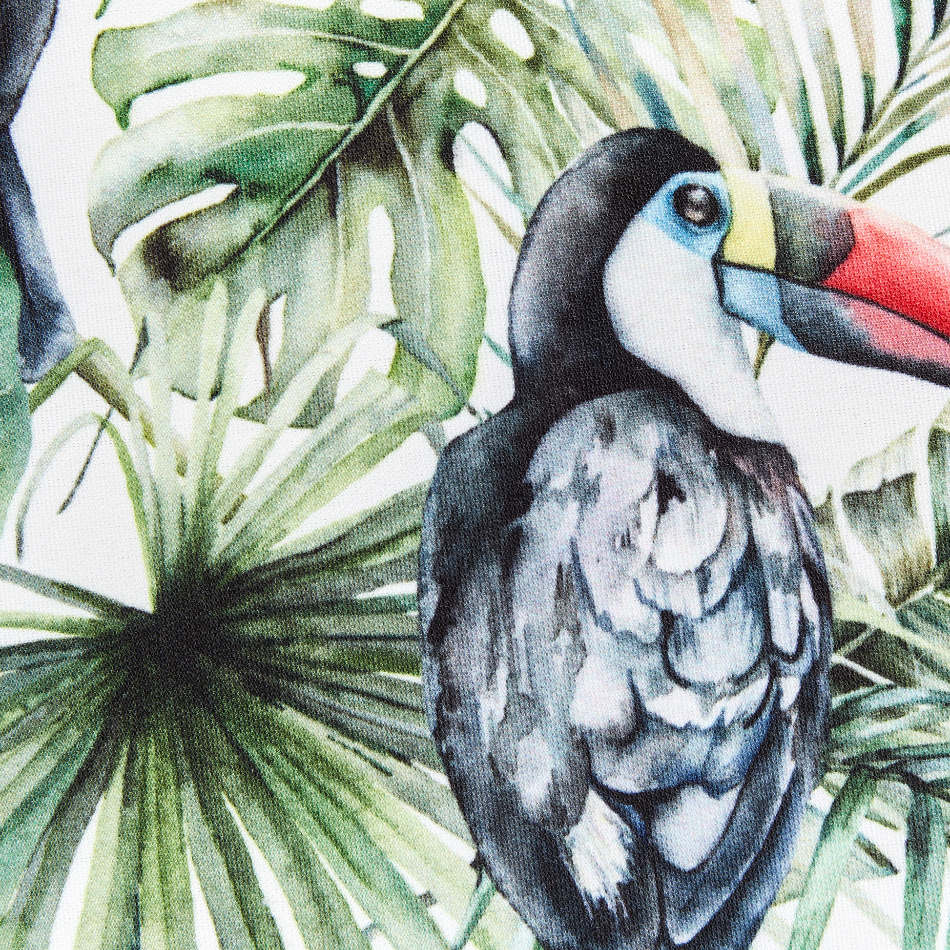 Ergänzen Sie Ihre Gartenbank, Hängematte oder Gartenlounge mit diesen zwei Zierkissen, um Ihren Aussenbereich in ein tropisches Paradies zu verwandeln. Die Kissen verfügen über eine angenehm weiche Polyester-Füllung und sind mit wasserabweisenden Kissenhüllen versehen. Zudem zeichnen sich die Sofakissen mit ihren exotischen Mustern aus, die mehrere Tukane, tropische Blumen und Blätter zeigen. Dieses farbenfrohe Vogel- und Pflanzenmuster bringt einen frischen Look auch in Ihren Innenbereich. Die Kissenbezüge sind zusätzlich mit Reissverschlüssen versehen, so können Sie diese bei Bedarf zum Waschen abnehmen oder gegen andere Hüllen austauschen.   Material: Polyester. Material Zusammensetzung: 100% Polyester Montage: Benötigt keine Montage Das Angebot beinhaltet: 2 x Gartenkissen Höhe: 10 zusätzliche Information: Das Kissen ist vakuumverpackt. Nehmen Sie Ihr Kissen aus der Verpackung heraus und lassen Sie es 24 Stunden lang liegen, bis es seine volle Dichte erreicht. Gestalten: Rund Breite: 40 Tiefe: 40 Art: Gartenkissen 2er Set Stil: Modern Allgemeine Farbe: Bunt Muster: Tiermuster Hauptmaterial: Polyester Füllmaterial: Polyester