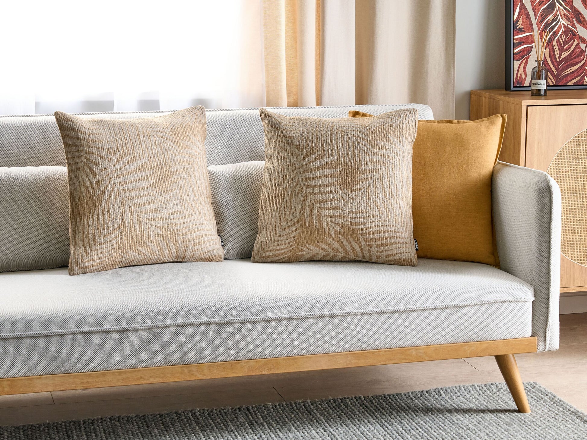 Verleihen Sie Ihrem Raum einen Hauch von natürlicher Schönheit mit diesem Jutekissen mit Blattmuster in Weiss. Mit ihrem rustikalen Stil sind sie ideal, um Ihren Wohnraum mit einem natürlichen Look zu verschönern. Die Kissen haben eine dicke Füllung und einen abnehmbaren Bezug, der sich leicht reinigen lässt. Material: Jute. Material Zusammensetzung: 100% Jute Montage: Benötigt keine Montage Das Angebot beinhaltet: 2 x Zierkissen Höhe: 14 zusätzliche Information: Das Kissen ist vakuumverpackt. Nehmen Sie Ihr Kissen aus der Verpackung heraus und lassen Sie es 24 Stunden lang liegen, bis es seine volle Dichte erreicht., Jeder Artikel ist ein handgefertigtes Unikat; Farbschattierung und Muster können daher vom Foto abweichen. Gestalten: Quadratisch Breite: 45 Tiefe: 45 Art: Dekokissen 2er Set Stil: Boho Allgemeine Farbe: Beige Schatten: Cremeweiss Muster: Pflanzenmuster Hauptmaterial: Jute Füllmaterial: Polyester