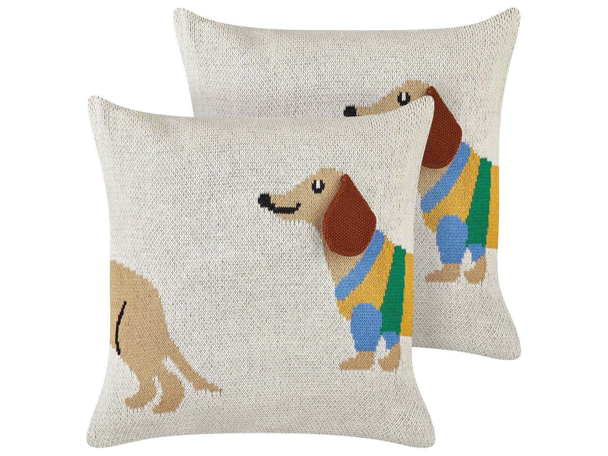 Dekokissen Dackelmotiv Baumwolle beige 45 x 45 cm 2er Set BATTAL