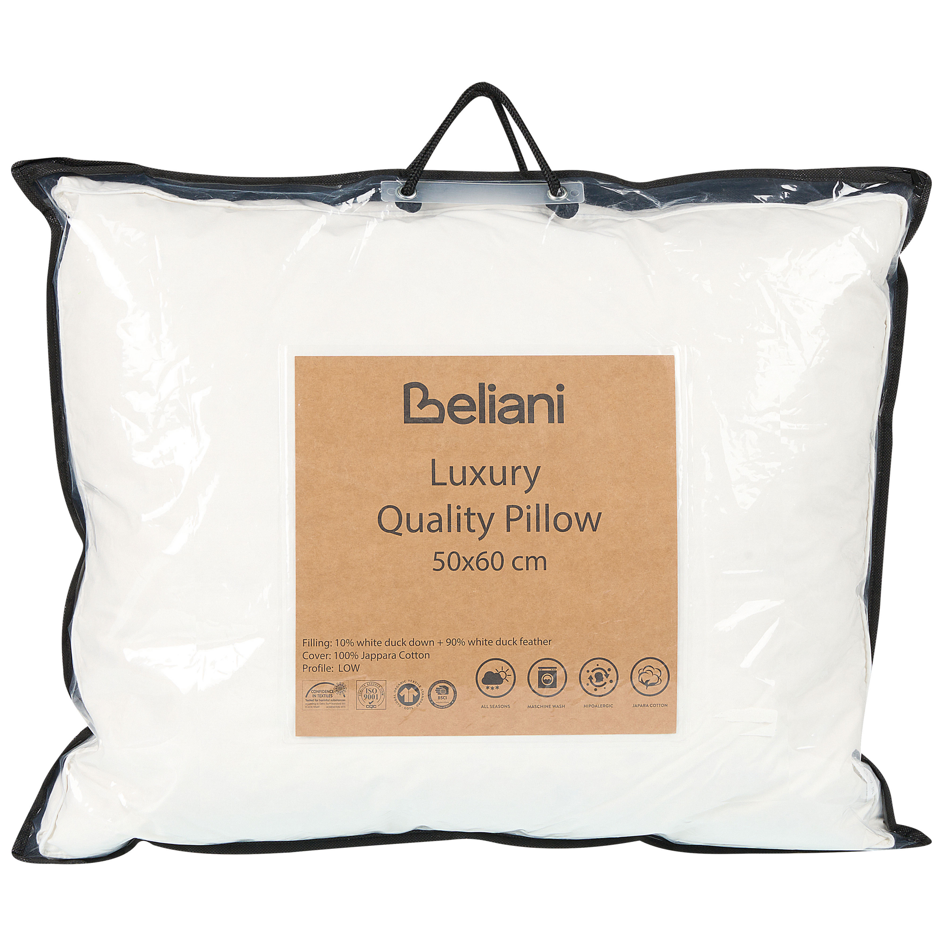 Diese bequemen und weichen Kissen erden Ihnen den höchsten Schlafkomfort bieten. Die Füllung, die aus Entenfedern mit hohem Daunen-Anteil besteht, sowie der Bezug aus der hautfreundlichen und atmungsaktiven Japara Baumwolle werden Ihnen einen entspannten und erholsamen Schlaf ermöglichen. Freuen Sie sich auf die Kopfkissen, die für ein anschmiegsames und weiches Gefühl und für eine optimale Druckverteilung sorgen. Material: Japara Baumwolle. Montage: Benötigt keine Montage Das Angebot beinhaltet: 2 x Kissen Höhe: 10 zusätzliche Information: Dieses Produkt entspricht dem Öko-Tex®- Standard 100. Produkte mit diesem Zeichen wurden von international anerkannten Textilinstituten geprüft und zertifiziert. Textilien mit diesem Label können einen positiven Effekt auf das Wohlbefinden haben., Dieses Produkt wird aus Japara-Baumwolle hergestellt, einem hochwertigen Naturtextil, das durch die Beimischung von Wachs auf Paraffinbasis für seine bemerkenswerte Haltbarkeit bekannt ist. Dieses Gewebe wird nicht nur wegen seiner natürlichen Weichheit und seines eleganten Aussehens geschätzt, sondern auch wegen seiner wasser- und schmutzabweisenden Eigenschaften. Seine Atmungsaktivität macht es zur idealen Wahl für ganzjährigen Komfort. Gestalten: Rechteckig Breite: 60 Tiefe: 50 Art: Set mit 2 Kissen Allgemeine Farbe: Weiss Hauptmaterial: Japara Baumwolle Füllmaterial: Federn, Daunen