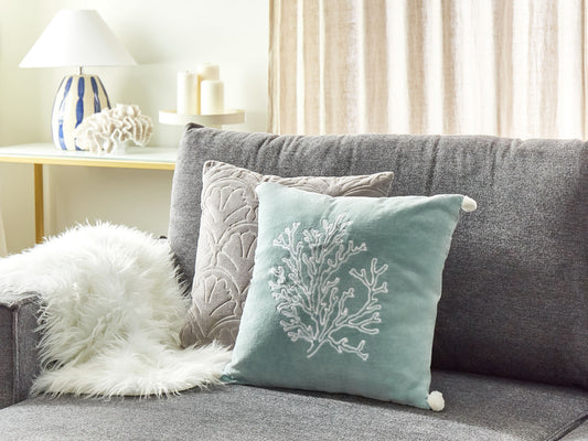 Dekokissen NORI Baumwolle 45 x 45 cm Mintgrün Pflanzenmuster