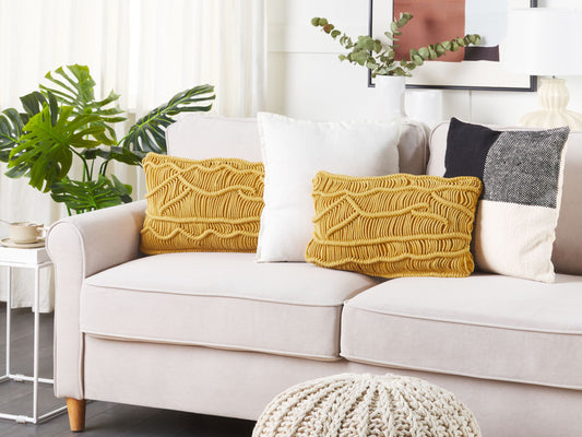Dekokissen KIRIS Baumwolle 30 x 50 cm Kein Muster Makramee Gelb