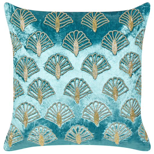 Dekokissen Muschelmuster Samtstoff türkis / gold 45 x 45 cm 2er Set PANDOREA