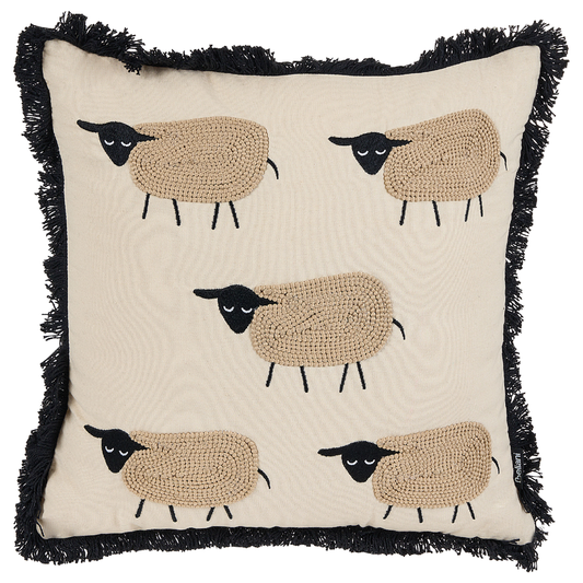 Dekokissen Tiermotiv Baumwolle beige bestickt mit Fransen 45 x 45 cm BANNU