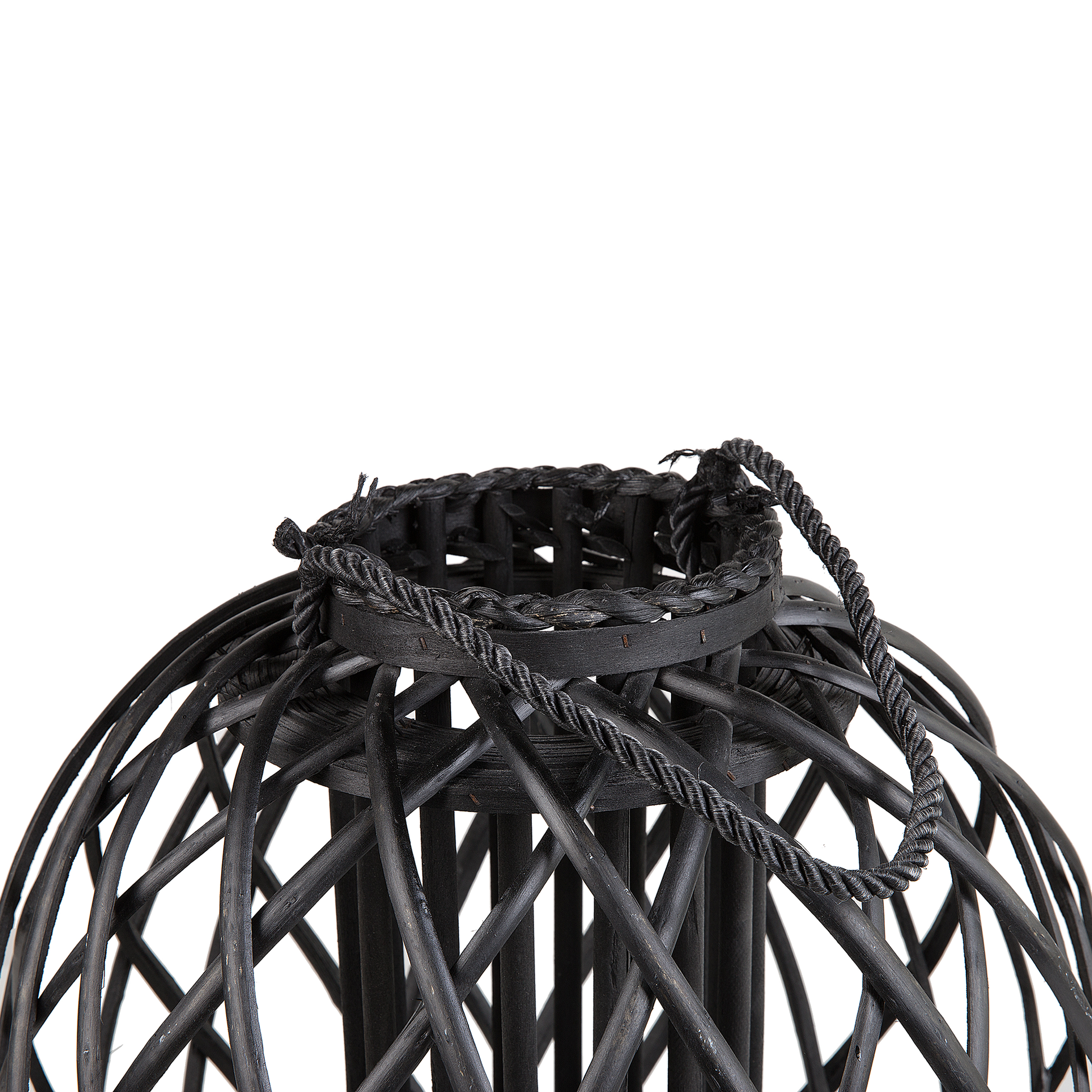 Diese schöne Laterne, aus Weidenholz geflochten, passt in alle Wohnräume. Sie steht auf einem stabilen, runden Fuss und besitzt zudem einen Henkel aus geflochtenem Seil zum Aufhängen und auch Tragen. Im Inneren befindet sich ein Kerzenhalter aus Glas für eine stimmungsvolle, festliche Atmosphäre. Material: Weidenholz. Zusätzliches Material: Glas. Gewicht: 1 Montage: Benötigt keine Montage Holzart: Salix Holzursprung: China Das Angebot beinhaltet: 1 x Laterne Höhe: 41 zusätzliche Information: Laternen aus Holz sollten nicht für längere Zeit im Freien aufbewahrt werden, da extreme Witterungsbedingungen zum Verbiegen der Holzelemente führen können Gestalten: Rund Breite: 39 Tiefe: 39 Art: Laterne Stil: Rustikal Allgemeine Farbe: Schwarz Hauptmaterial: Weidenholz