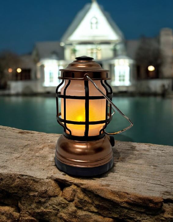 LED Campinglaterne mit Licht und Flammeneffekt mit Henkel Dimmbar