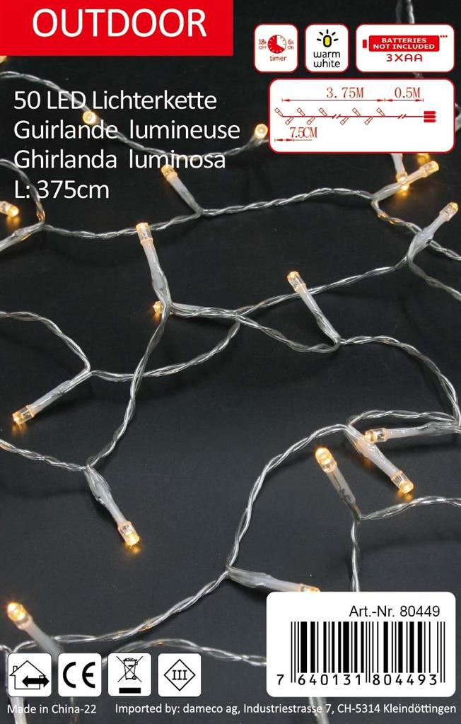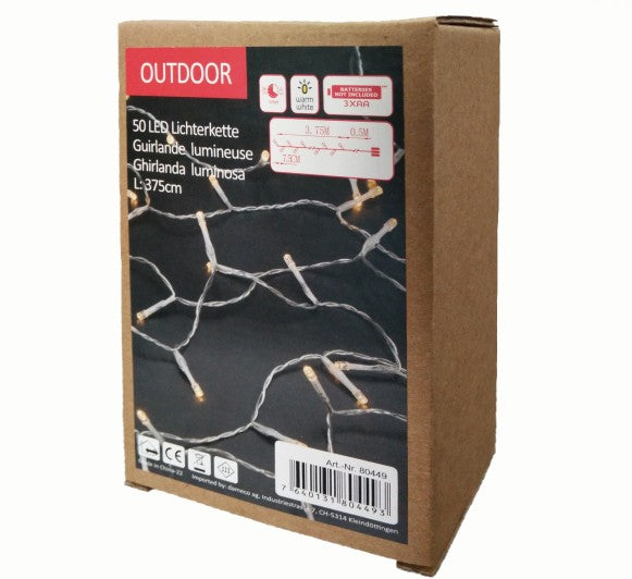 LED Outdoor Lichterkette 50 LED warm weisses Licht Länge 3.75m
