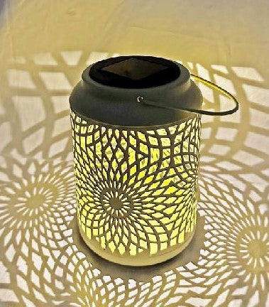gestanztes Muster mit Blumen mit Henkel zum Stellen oder Hängen 1 LED - warm weisses Licht Akku: 1x AA NiMh 200mAh Solar Panel: amorphous silicon 45x45mm inklusive VRB / CHF 00.25