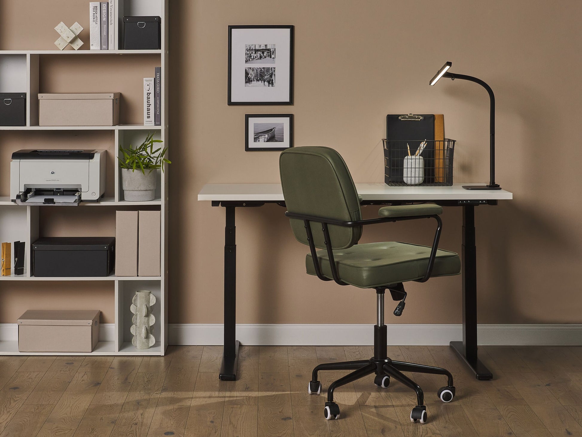 Bringen Sie mehr Licht in Ihr Heimbüro oder Ihre Arbeitsecke mit dieser stilvollen, modernen LED-Tischleuchte. Sie ist aus Kunststoff und Aluminium gefertigt, was sie sowohl langlebig als auch pflegeleicht macht. Mit einem praktischen Tageslichtsensor und einer Dimmfunktion können Sie einen Raum mit einer Beleuchtung schaffen, die Ihren Bedürfnissen entspricht. Ausserdem sorgen drei Farblichttemperaturen jederzeit für einen angenehmen und stimmungsvollen Lichtschein. Dank dem verstellbarem Arm und Schirm ist es einfach, das Licht genau dorthin zu lenken, wo Sie es gerade brauchen. Material: Kunststoff. Zusätzliches Material: Aluminium. Gewicht: 2 Montage: Nicht montiert Das Angebot beinhaltet: 1 x Tischleuchte Höhe: 48 zusätzliche Information: Die Stromkabel dürfen nur von einem qualifizierten Elektriker angepasst werden. Breite: 18 Tiefe: 48 Art: LED Schreibtischlampe Stil: Modern Allgemeine Farbe: Schwarz Hauptmaterial: Kunststoff Fassung: 10 W IP Protection Code: IP 20 LED Type: SMD 2835