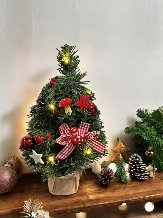 LED Weihnachtsbaum mit 10 LED Lichterkette Topf in Jute Farbe: Grün