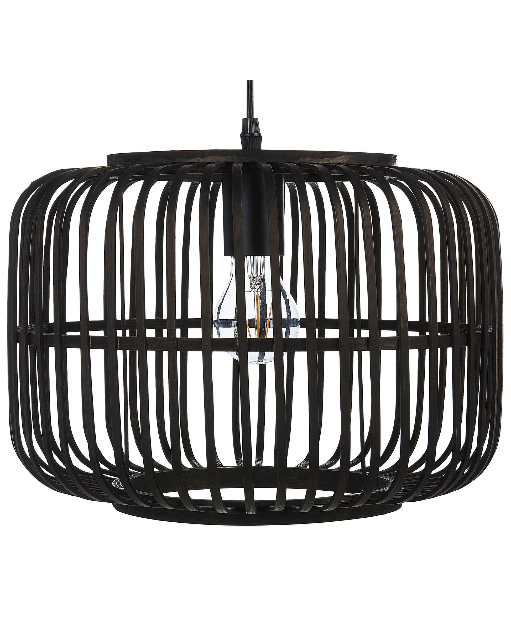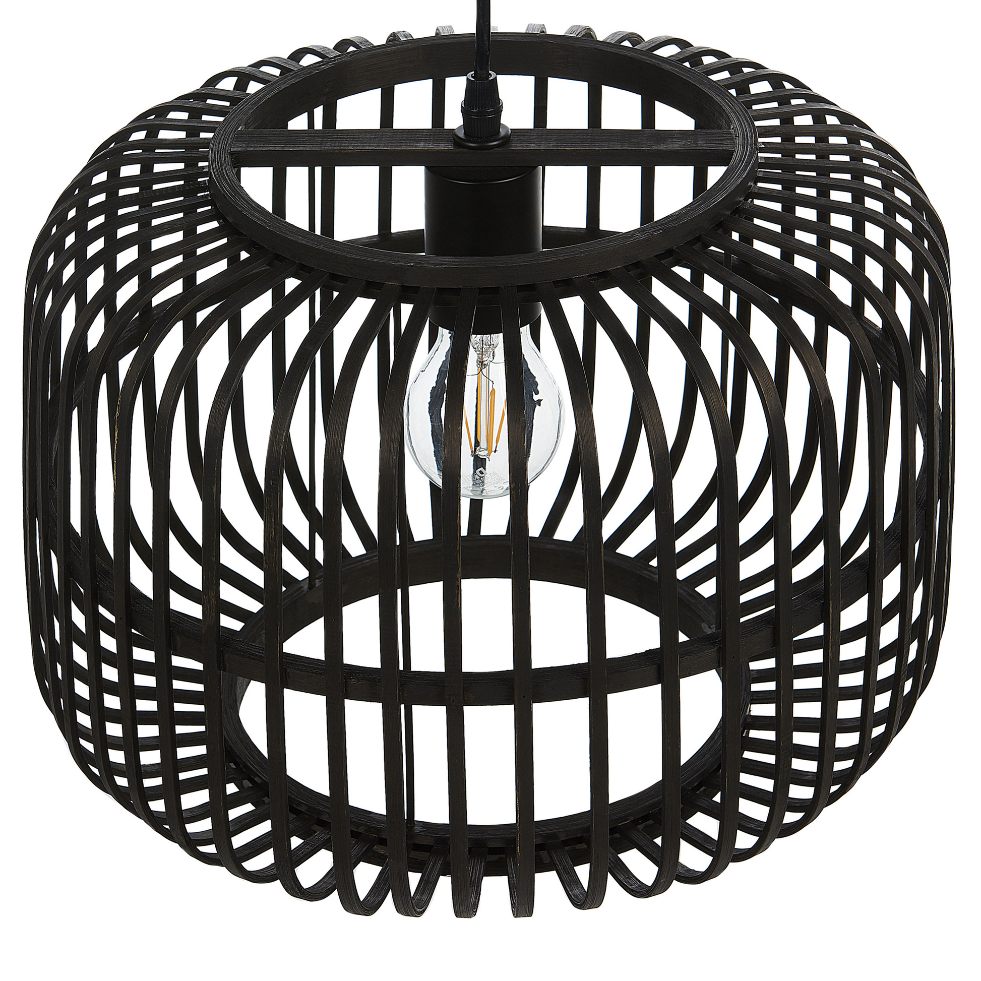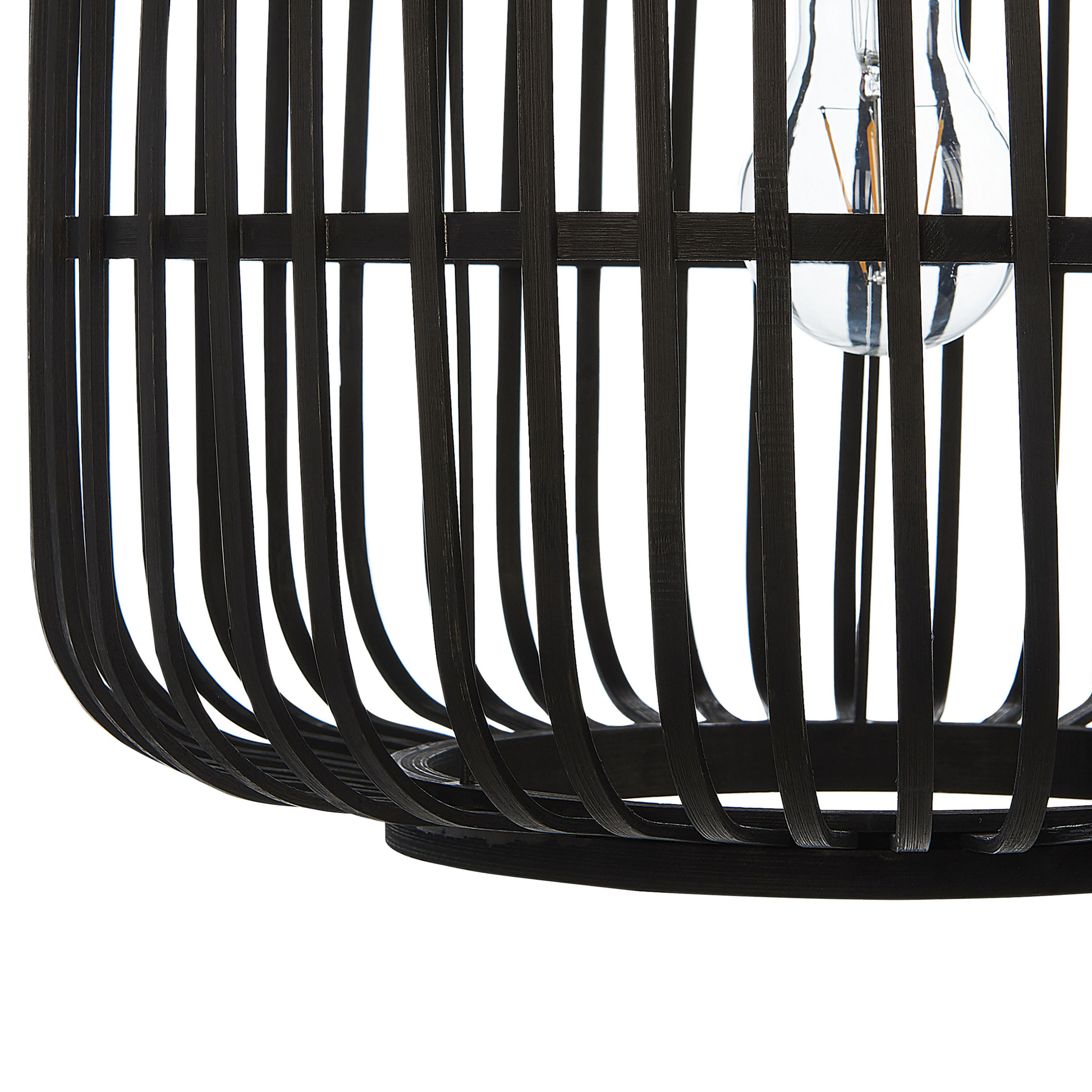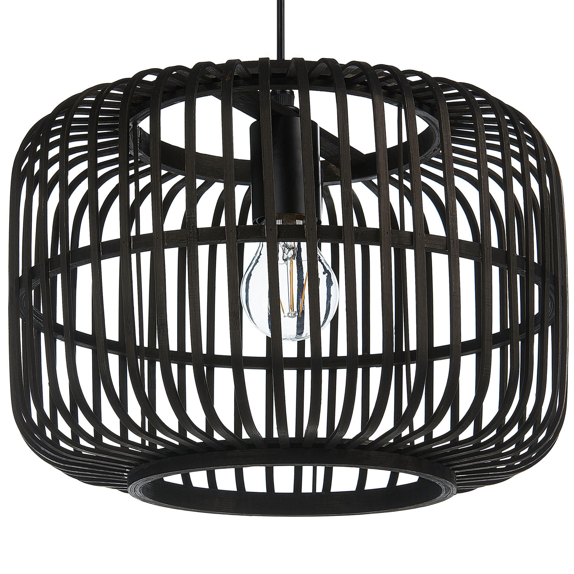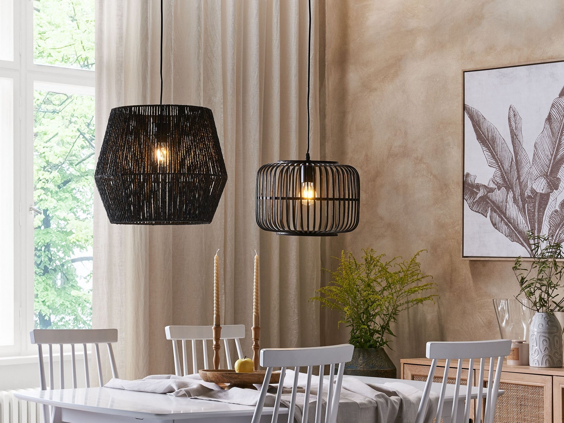 Fügen Sie diese Pendellampe Ihrem Wohn- oder Schlafzimmer hinzu, um den Raum sofort mit einer gemütlichen Boho-Atmosphäre zu füllen. Die Leuchte ist aus hochwertigem Bambusholz gefertigt, so ist das Modell sehr haltbar und langlebig. Die Raumlampe verfügt über einen runden Schirm in einer angesagten Käfig-Optik, der für spannende Licht- und Schatteneffekte im Wohnbereich sorgt. Material: Bambusholz. Zusätzliches Material: Eisen, PVC. Gewicht: 1 Montage: Installation benötigt Holzart: Bambusoideae Holzursprung: China Das Angebot beinhaltet: 1 x Hängeleuchte, Nicht im Lieferumfang enthalten: Leuchtmittel Höhe: 24 zusätzliche Information: Diese Leuchte ist geeignet für Leuchtmittel der Energieklassen A bis G auf einer Skala von A (sehr effizient) bis G (weniger effizient). Geeignet für: LED Leuchtmittel, Eco-Halogen Leuchtmittel, Energiesparleuchtmittel., Die Stromkabel dürfen nur von einem qualifizierten Elektriker angepasst werden., Hinweis! Beschädigungsgefahr! Bitte verwenden Sie keine Messer oder andere spitze oder scharfe Gegenstände, um die Verpackung zu öffnen, da das Produkt sonst beschädigt werden könnte. Breite: 32 Tiefe: 32 Art: Hängelampe Stil: Boho Allgemeine Farbe: Schwarz Hauptmaterial: Bambusholz Fassung: Max. 40 W IP Protection Code: IP 20