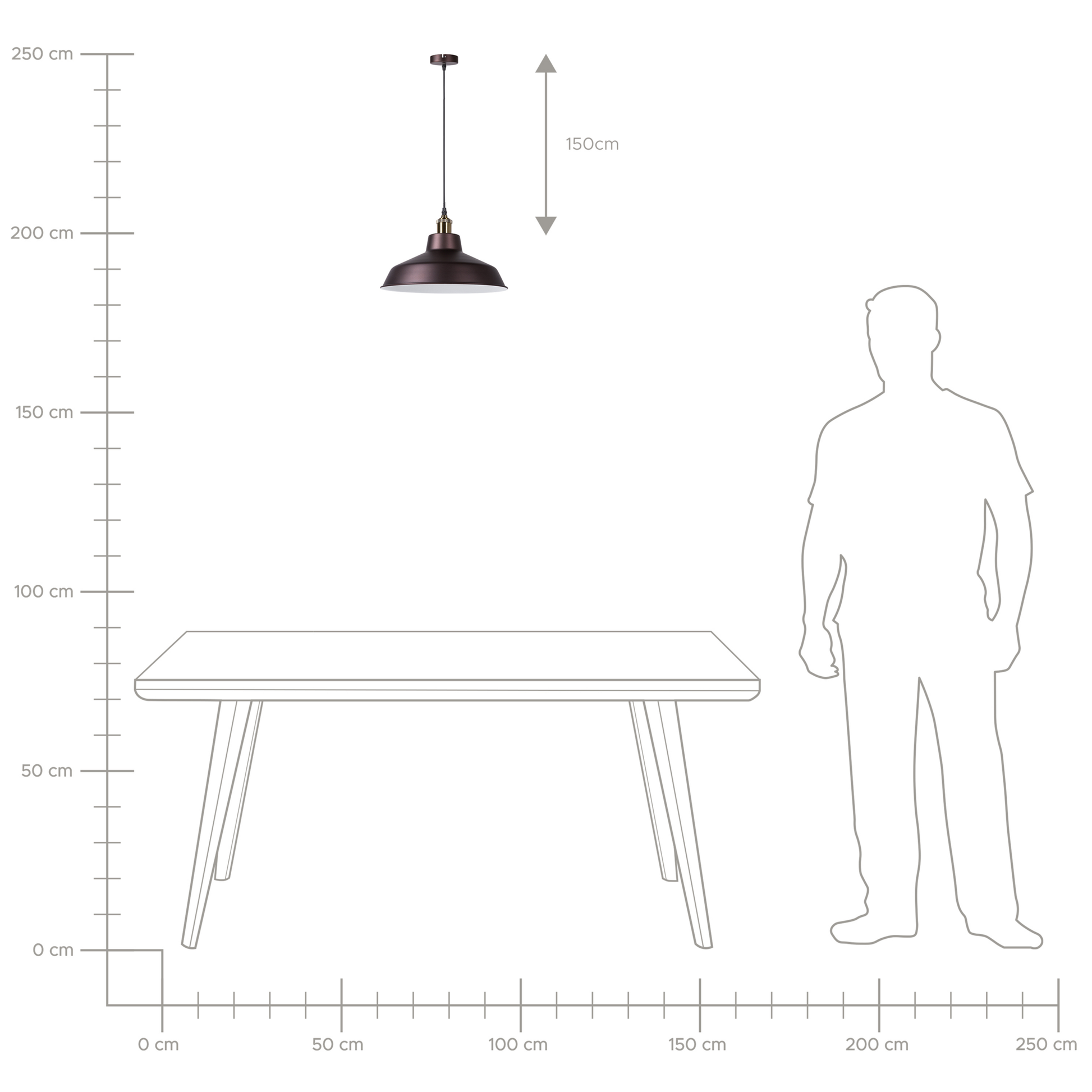 Beschreibung: Eindrucksvolles Design und trendy, industrielle Ausstrahlung sind die Markenzeichen dieser Hängeleuchte. Die Aussenseite des Lampenschirms aus robustem Metall hat einen warmen, dunkelbraunen Farbton, der an Schokolade oder Kaffee erinnert. Der weisse Finish an der Innenseite bietet einen schönen Kontrast und sorgt für helle, intensive Beleuchtung. Eine kleine, messingfarbene Spitze sorgt bei dem runden, abgeflachten Lampenschirm für das gewisse Etwas. Die Lampe ist mit einem schwarzen Kabel versehen. Material: Metall. Zusätzliches Material: PVC. Gewicht: 1 Montage: Erfordert Installation und Montage Das Angebot beinhaltet: 1 x Hängeleuchte, Nicht im Lieferumfang enthalten: Leuchtmittel Höhe: 168 zusätzliche Information: Diese Leuchte ist geeignet für Leuchtmittel der Energieklassen A bis G auf einer Skala von A (sehr effizient) bis G (weniger effizient). Geeignet für: LED Leuchtmittel, Eco-Halogen Leuchtmittel, Energiesparleuchtmittel., Die Stromkabel dürfen nur von einem qualifizierten Elektriker angepasst werden. Breite: 35 Tiefe: 35 Art: Hängeleuchte Stil: Modern Allgemeine Farbe: Braun Schatten: Dunkelbraun Hauptmaterial: Metall Fassung: Max. 60 W IP Protection Code: IP 20