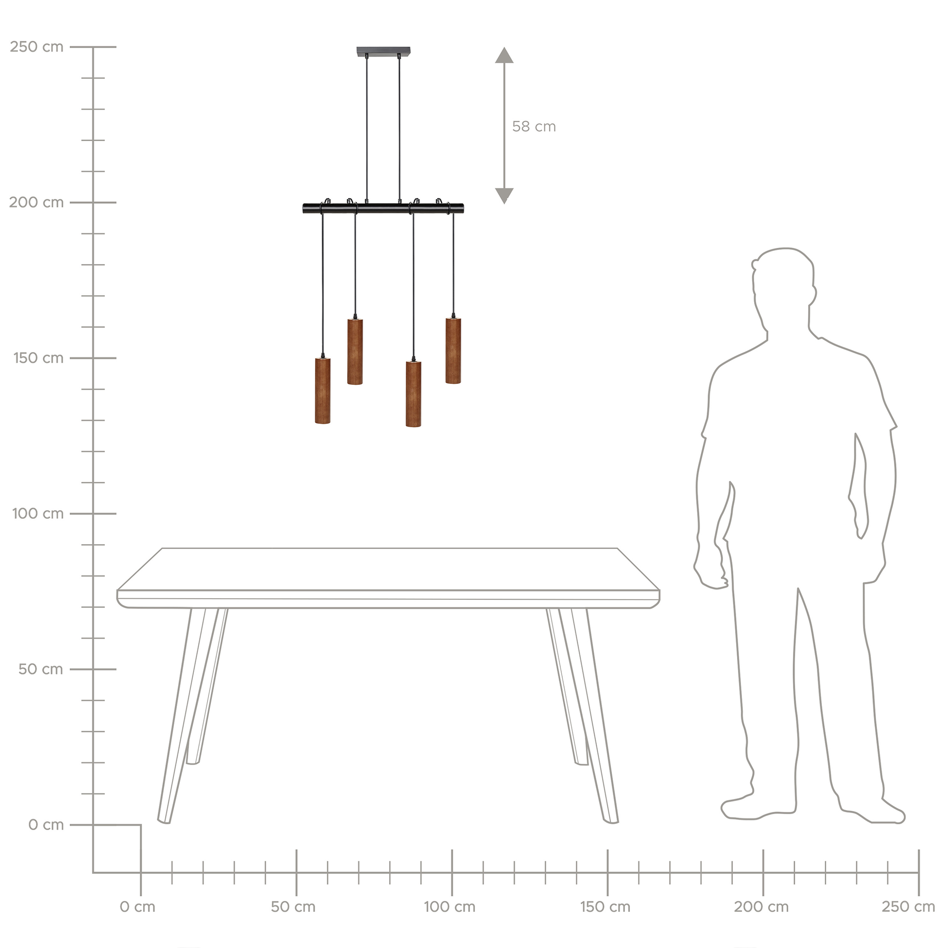Werten Sie Ihren Wohnbereich auf und beleuchten Sie Ihr Zuhause mit dieser 4-flammigen Hängelampe. Ihr Hauptmerkmal sind die Schirme aus dunklem Eichenholz, die in jedem Wohnraum zum Eyecatcher und für ein angenehmes Licht im Zimmer sorgen werden. Der Sockel ist aus Eisen gefertigt, so dass das Wohnaccessoire pflegeleicht sowie langlebig ist. Das Gesamtdesign macht die Lampe zu einer grossartigen Ergänzung für moderne, Retro- oder Industrial Style Räume. Material: Eisen. Gewicht: 2 Montage: Erfordert Installation und Montage Holzart: Lignum quercus Holzursprung: China Das Angebot beinhaltet: 1 x Hängeleuchte, Nicht im Lieferumfang enthalten: Leuchtmittel Höhe: 162 zusätzliche Information: Diese Leuchte ist geeignet für Leuchtmittel der Energieklassen A bis G auf einer Skala von A (sehr effizient) bis G (weniger effizient). Geeignet für: LED Leuchtmittel, Eco-Halogen Leuchtmittel, Energiesparleuchtmittel., Die Stromkabel dürfen nur von einem qualifizierten Elektriker angepasst werden. Breite: 61 Tiefe: 16 Art: Hängelampe Stil: Modern Allgemeine Farbe: Schwarz Hauptmaterial: Eisen Fassung: 5 W IP Protection Code: IP 20