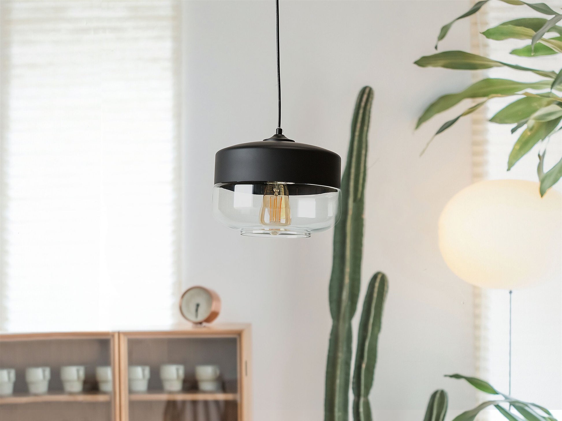Der klare Lichtschein und das lange Kabel machen diese Pendelleuchte zu einer fabelhaften Wahl für Ihren Esstisch oder Ihre Küchentheke. Der runde Lampenschirm verbindet die Schönheit klassischer Farbtöne mit hochwertigen Materialien und einem formvollendeten, schlichten Design. Ergänzen Sie den transparenten Glasschirm mit einer effektvollen Glühbirne, um den modernen Look der Leuchte noch hervorzuheben. Aufgehängt über Tischflächen oder mitten im Wohnzimmer wird sie sicherlich zu einem Vorzeigeelement Ihrer Einrichtung. Material: Glas. Zusätzliches Material: Stahl. Gewicht: 1 Montage: Erfordert Installation und Montage Das Angebot beinhaltet: 1 x Hängeleuchte, Nicht im Lieferumfang enthalten: Leuchtmittel Höhe: 117 zusätzliche Information: Diese Leuchte ist geeignet für Leuchtmittel der Energieklassen A bis G auf einer Skala von A (sehr effizient) bis G (weniger effizient). Geeignet für: LED Leuchtmittel, Eco-Halogen Leuchtmittel, Energiesparleuchtmittel., Die Stromkabel dürfen nur von einem qualifizierten Elektriker angepasst werden. Breite: 25 Tiefe: 25 Art: Hängelampe Stil: Modern Allgemeine Farbe: Schwarz Hauptmaterial: Glas Fassung: Max. 60 W IP Protection Code: IP 20