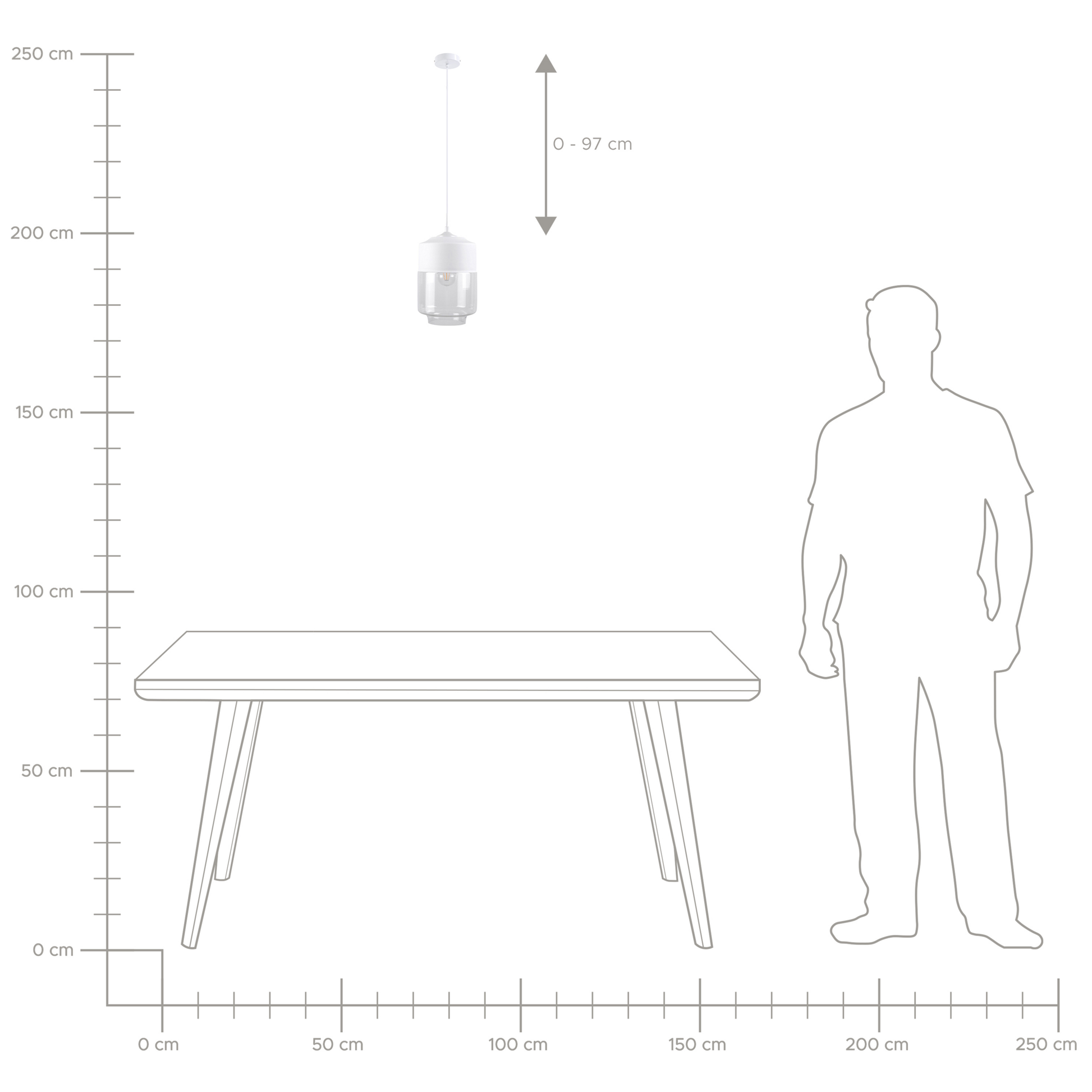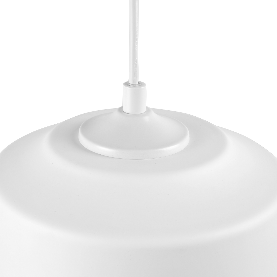 Die Designer Lampe ist in ihrer Schlichtheit schon wieder ausgefallen. Der moderne, runde Lampenschirm verbreitet glasklares Licht, und mit ihrer Farb- und Materialkombination wird diese Hängeleuchte zu einem dekoratven Stilelement. Material: Glas. Zusätzliches Material: Stahl. Gewicht: 1 Montage: Installation benötigt Das Angebot beinhaltet: 1 x Hängeleuchte, Nicht im Lieferumfang enthalten: Leuchtmittel Höhe: 125 zusätzliche Information: Diese Leuchte ist geeignet für Leuchtmittel der Energieklassen A bis G auf einer Skala von A (sehr effizient) bis G (weniger effizient). Geeignet für: LED Leuchtmittel, Eco-Halogen Leuchtmittel, Energiesparleuchtmittel., Die Stromkabel dürfen nur von einem qualifizierten Elektriker angepasst werden. Breite: 18 Tiefe: 18 Art: Hängelampe Stil: Modern Allgemeine Farbe: Weiss Hauptmaterial: Glas Fassung: Max. 60 W IP Protection Code: IP 20