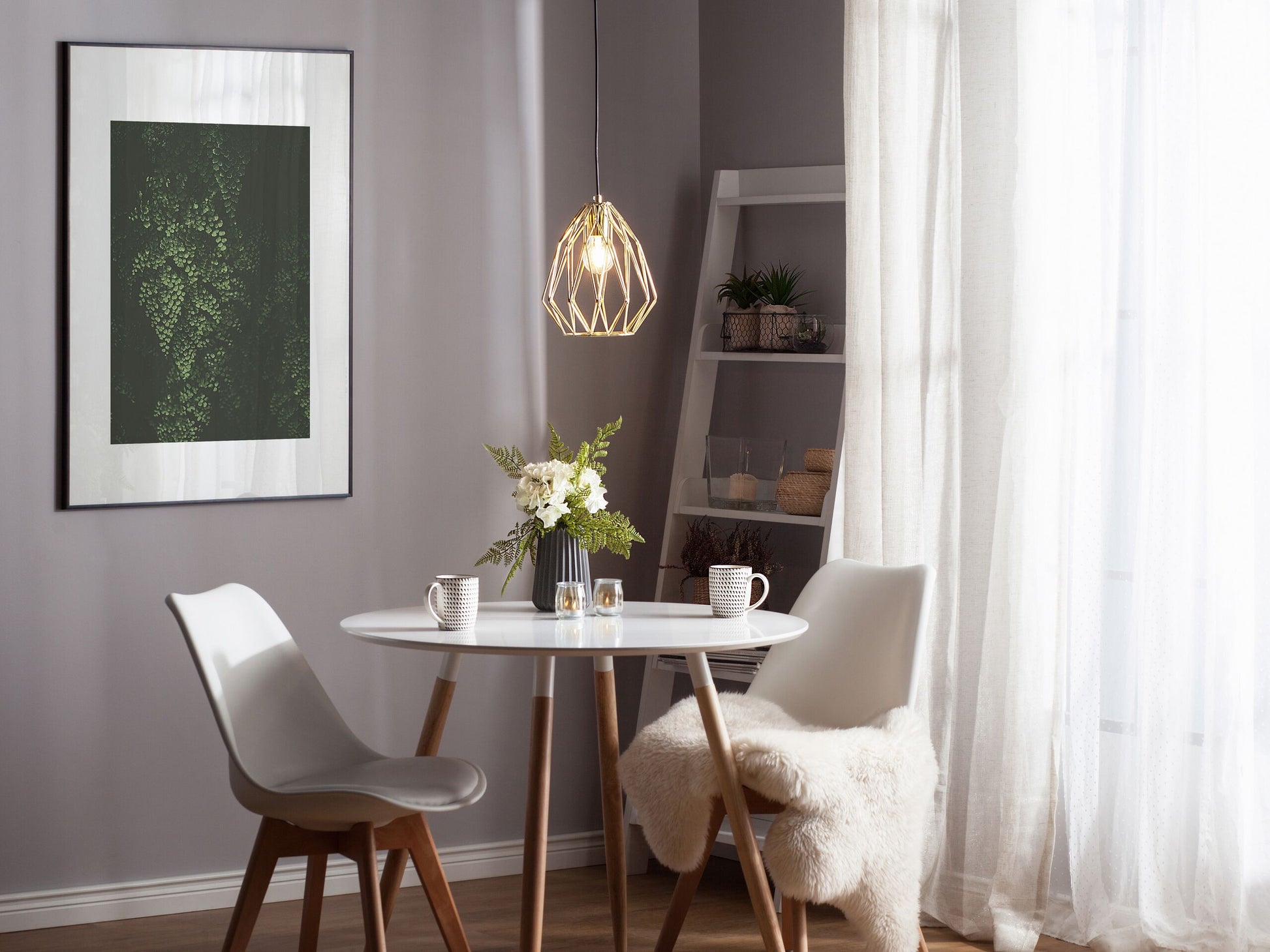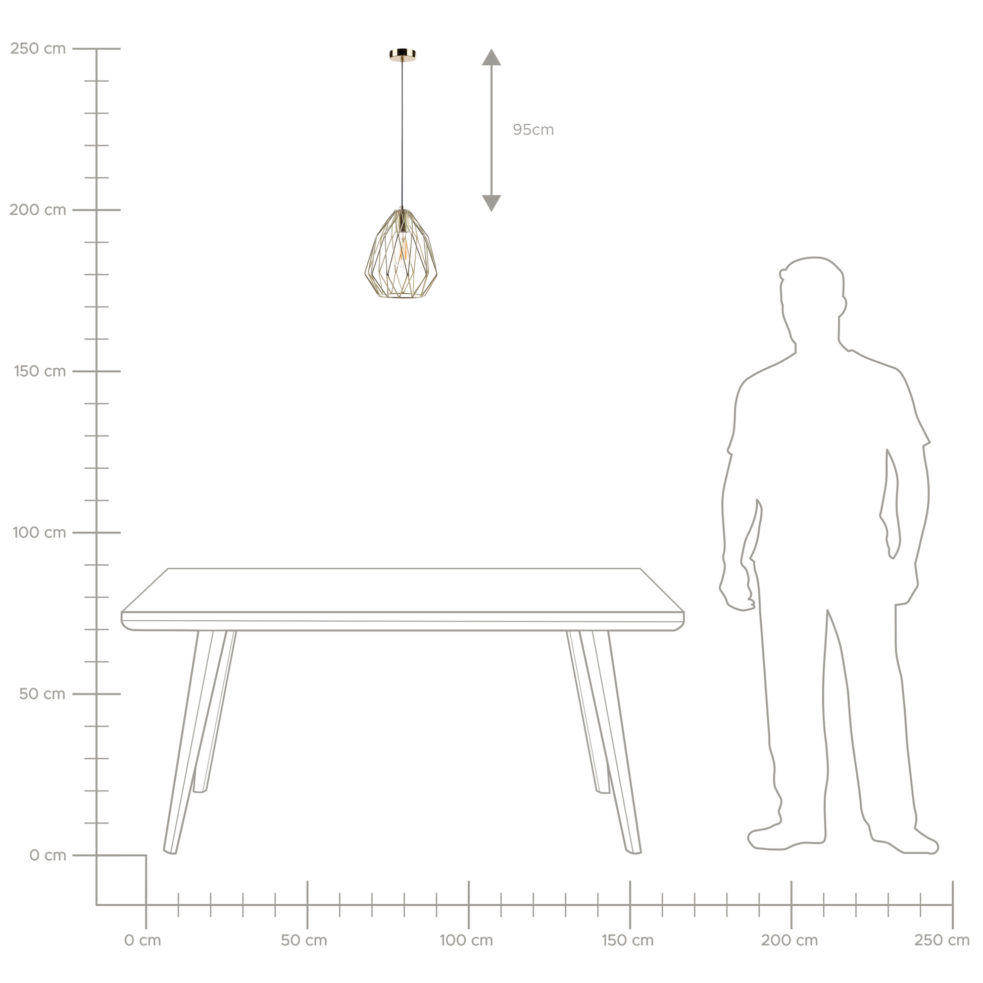 Der Lampenschirm der birnenförmigen Pendelleuchte besteht aus goldfarbenen Metallstreben. Das Design erinnert an den luxuriösen Stil der 20er Jahre. Die offene Struktur der Metallstreben sorgt für ein spannendes Licht- und Schattenspiel. Material: Metall. Zusätzliches Material: PVC. Gewicht: 1 Montage: Installation benötigt Das Angebot beinhaltet: 1 x Hängeleuchte, Nicht im Lieferumfang enthalten: Leuchtmittel Höhe: 124 zusätzliche Information: Diese Leuchte ist geeignet für Leuchtmittel der Energieklassen A bis G auf einer Skala von A (sehr effizient) bis G (weniger effizient). Geeignet für: LED Leuchtmittel, Eco-Halogen Leuchtmittel, Energiesparleuchtmittel., Die Stromkabel dürfen nur von einem qualifizierten Elektriker angepasst werden. Breite: 22 Tiefe: 22 Art: Hängeleuchte Stil: Modern Allgemeine Farbe: Gold Hauptmaterial: Metall Fassung: Max. 40 W IP Protection Code: IP 20