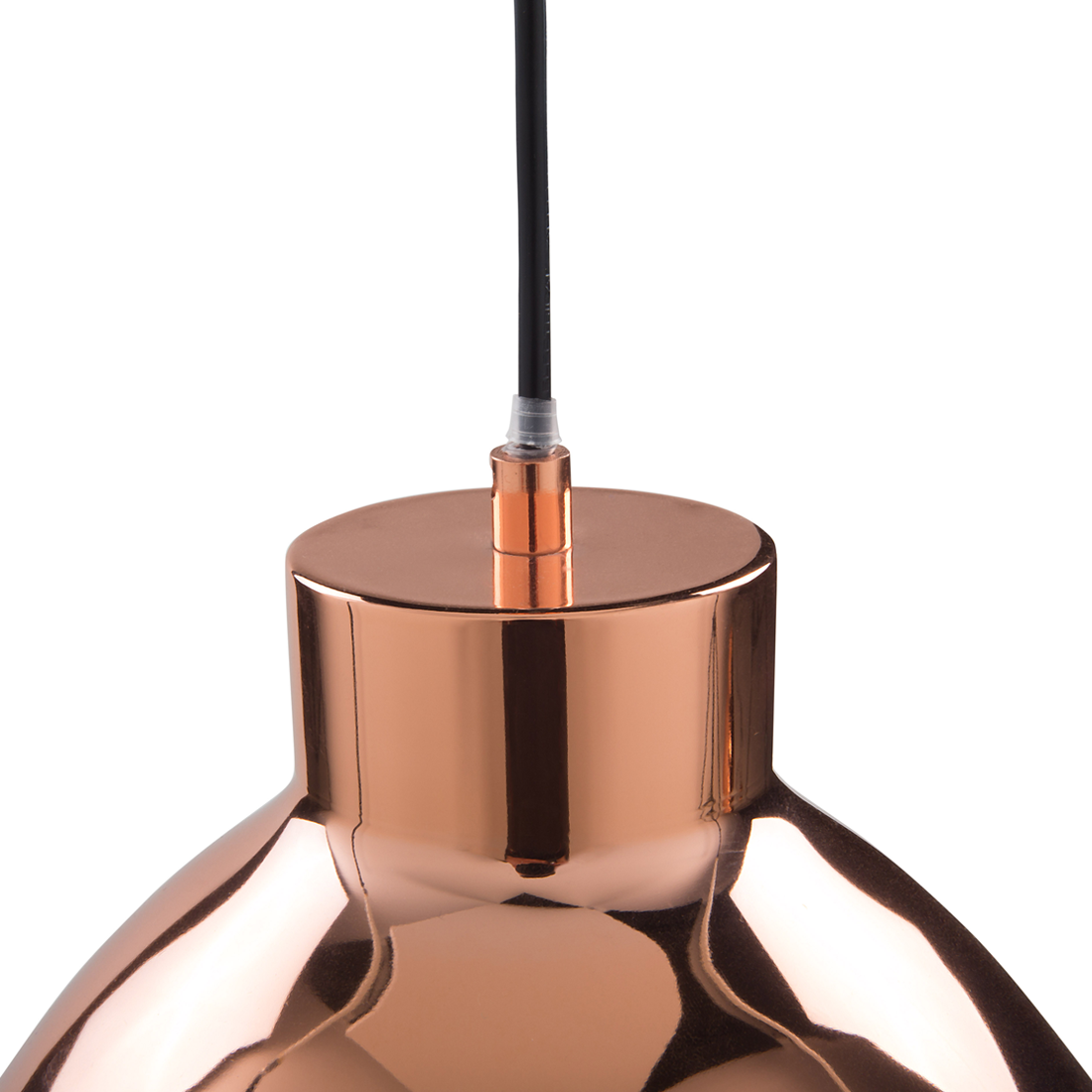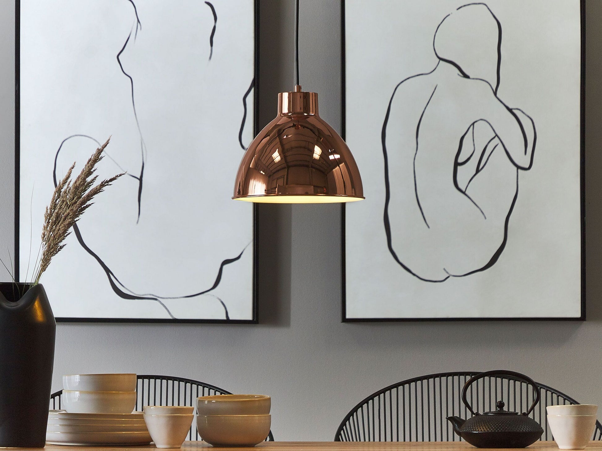 Die wunderschöne Pendelleuchte ist eine vielseitige Beleuchtungskünstlerin. Der warme Kupferfarbton strahlt Gemütlichkeit aus, die schön geschwungene Formgebung verleiht ihr klassische Eleganz, die glänzende Oberfläche sorgt für ein strahlendes Ambiente und und ihr ausdrucksstarkes Design macht sie modern und zugleich industriell. Material: Eisen. Gewicht: 1 Montage: Installation benötigt Das Angebot beinhaltet: 1 x Hängeleuchte, Nicht im Lieferumfang enthalten: Leuchtmittel Höhe: 119 zusätzliche Information: Diese Leuchte ist geeignet für Leuchtmittel der Energieklassen A bis G auf einer Skala von A (sehr effizient) bis G (weniger effizient). Geeignet für: LED Leuchtmittel, Eco-Halogen Leuchtmittel, Energiesparleuchtmittel., Die Stromkabel dürfen nur von einem qualifizierten Elektriker angepasst werden. Breite: 26 Tiefe: 26 Art: Hängeleuchte Stil: Modern Allgemeine Farbe: Kupfer Hauptmaterial: Eisen Fassung: Max. 60 W IP Protection Code: IP 20