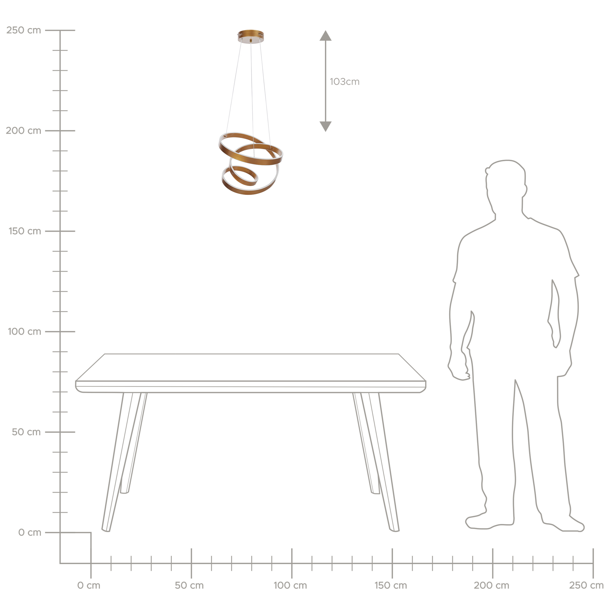 Diese schicke und zugleich elegante Hängelampe ist ein echter Hingucker in jedem Wohnbereich, ob modern oder glamourös. Sie ist aus leichtem, spiralförmig gebogenem Aluminium gefertigt, was ihr einen edlen Look verleiht. Die warme, goldene Oberfläche unterstreicht das gehobene Design. Die Leuchte wird mit LED-Licht, transparenten Kabeln und einer zusätzlichen Schutzkappe geliefert. Material: Aluminium. Zusätzliches Material: Eisen, Silikon. Gewicht: 3 Montage: Installation benötigt Das Angebot beinhaltet: 1 x Hängeleuchte Höhe: 135 zusätzliche Information: Die Stromkabel dürfen nur von einem qualifizierten Elektriker angepasst werden. Breite: 50 Tiefe: 50 Art: LED Hängelampe Stil: Modern Allgemeine Farbe: Gold Hauptmaterial: Aluminium Fassung: 80 W IP Protection Code: IP 20 LED Type: SMD 2835