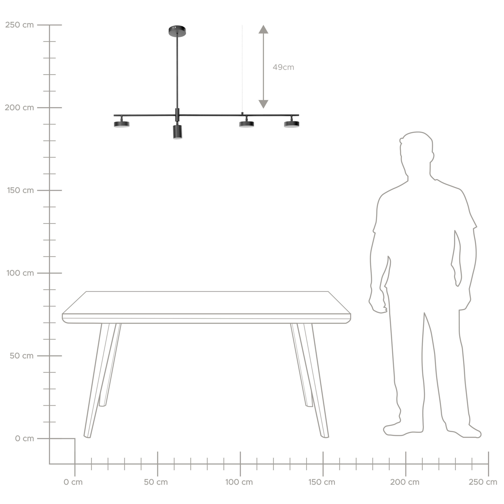 Beschreibung: Eine moderne, vom minimalistischen Loft-Stil inspirierte Form kennzeichnet diese Hängelampe. Mit ihren 4 LED-Leuchten strahlt die Lampe warmweisses Licht aus, das perfekt zur Hervorhebung des Esszimmers oder Wohnzimmers geeignet ist. Die verstellbaren Lampenschirme ermöglichen es, die Lichter in verschiedene Richtungen zu drehen.  Die schwarz lackierte Oberfläche macht die Lampe zu einem vielseitigen Designobjekt, das zu Innenräumen in verschiedenen Farben passt.  Material: Eisen. Zusätzliches Material: Aluminium, Acryl. Gewicht: 0.8 Montage: Installation benötigt Das Angebot beinhaltet: 1 x Hängeleuchte Höhe: 69 zusätzliche Information: Die Stromkabel dürfen nur von einem qualifizierten Elektriker angepasst werden. Breite: 122 Tiefe: 10 Art: LED Hängelampe Stil: Modern Allgemeine Farbe: Schwarz Hauptmaterial: Eisen Fassung: 29.4 W IP Protection Code: IP 20 LED Type: SMD 2835