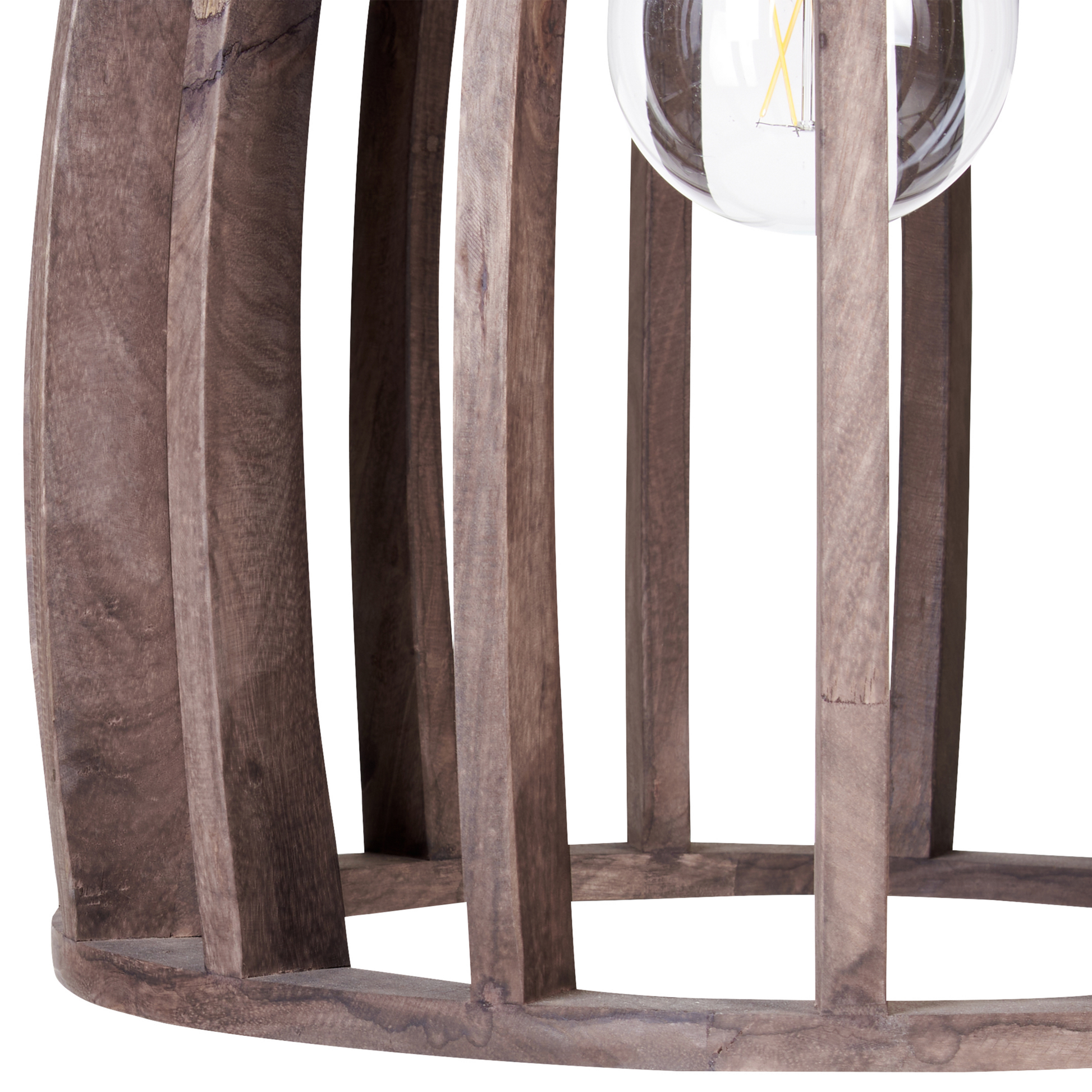 Beschreibung: Diese Holzlampe wird Ihren Raum nicht nur viel heller machen, sondern auch eine natürliche Boho-Atmosphäre in den Wohnraum zaubern. Handgefertigt aus robustem, hochwertigem Holz, ist die Leuchte besonder Langlebig und benötigt auch keine tägliche Pflege. Dank des offenen, käfigartigen Schirms wird das Licht gleichmässig verteilt, so dass Sie keine Probleme haben werden, auch grössere Räume wie Ess- oder Wohnzimmer zu beleuchten. Material: Mango Holz. Gewicht: 4 Montage: Erfordert Installation und Montage Holzart: Mangifera indica Holzursprung: China Das Angebot beinhaltet: 1 x Hängeleuchte, Nicht im Lieferumfang enthalten: Leuchtmittel Höhe: 165 zusätzliche Information: Die Stromkabel dürfen nur von einem qualifizierten Elektriker angepasst werden., Da jedes Produkt handgefertigt wird, kann es zu kleineren Abweichungen in der Farbe und der äusseren Struktur kommen. Diese Abweichungen stellen keinen Qualitätsmangel dar, sondern sind eine warentypische Eigenschaft., Der sichtbare Alterungseffekt, sowie jede Art von Verfärbung oder Abnutzung sind absichtlich und stellen keinen Qualitätsmangel des Produkts dar., Holz ist ein Naturprodukt. Farb- und Strukturunterschiede, Narben, Falten und sonstige Naturmerkmale sind Echtheitsbeweise und keine zur Reklamation berechtigende Fehler. Breite: 45 Tiefe: 45 Art: Hängelampe Stil: Boho Allgemeine Farbe: Dunkler Holzfarbton Hauptmaterial: Mango Holz Fassung: 40 W IP Protection Code: IP 20
