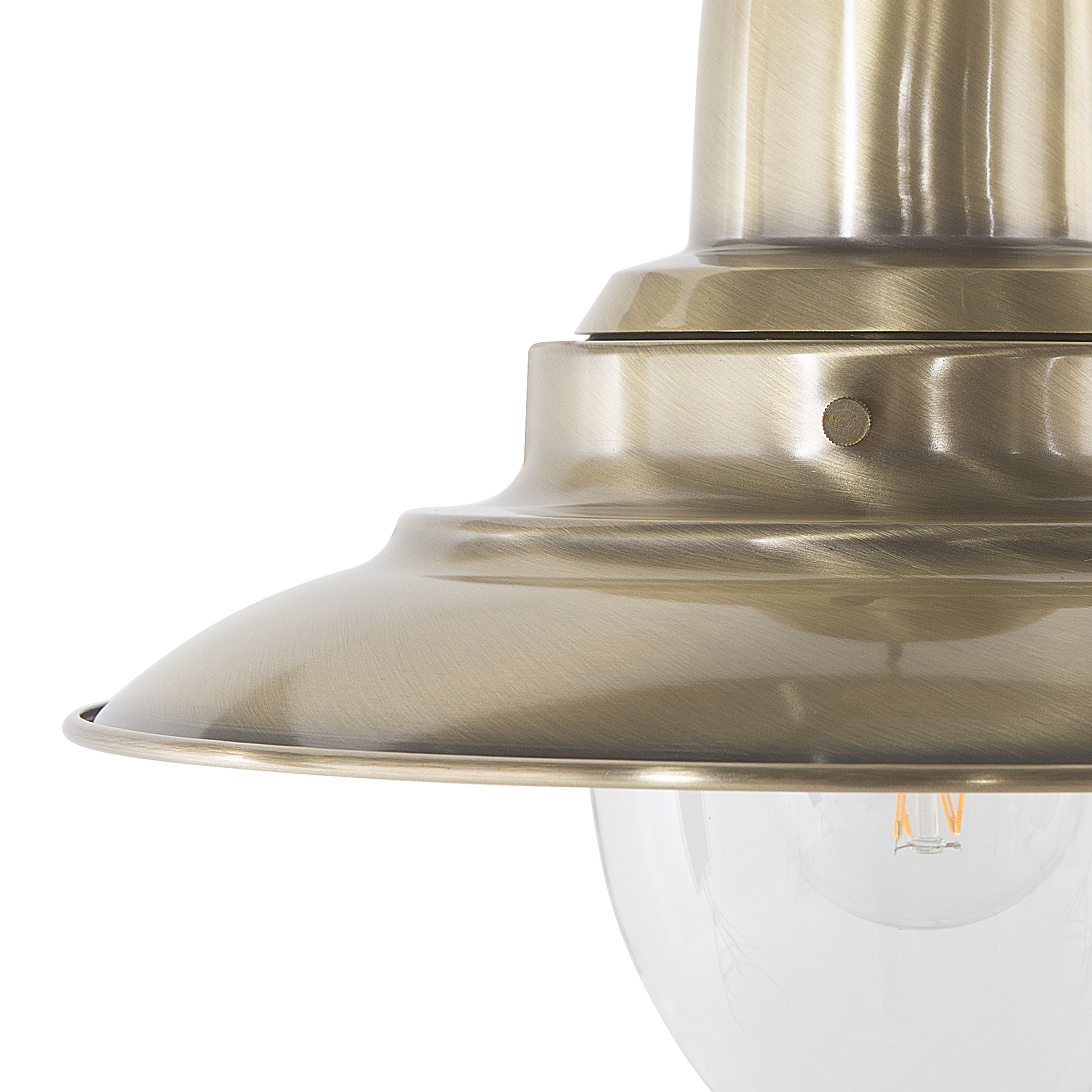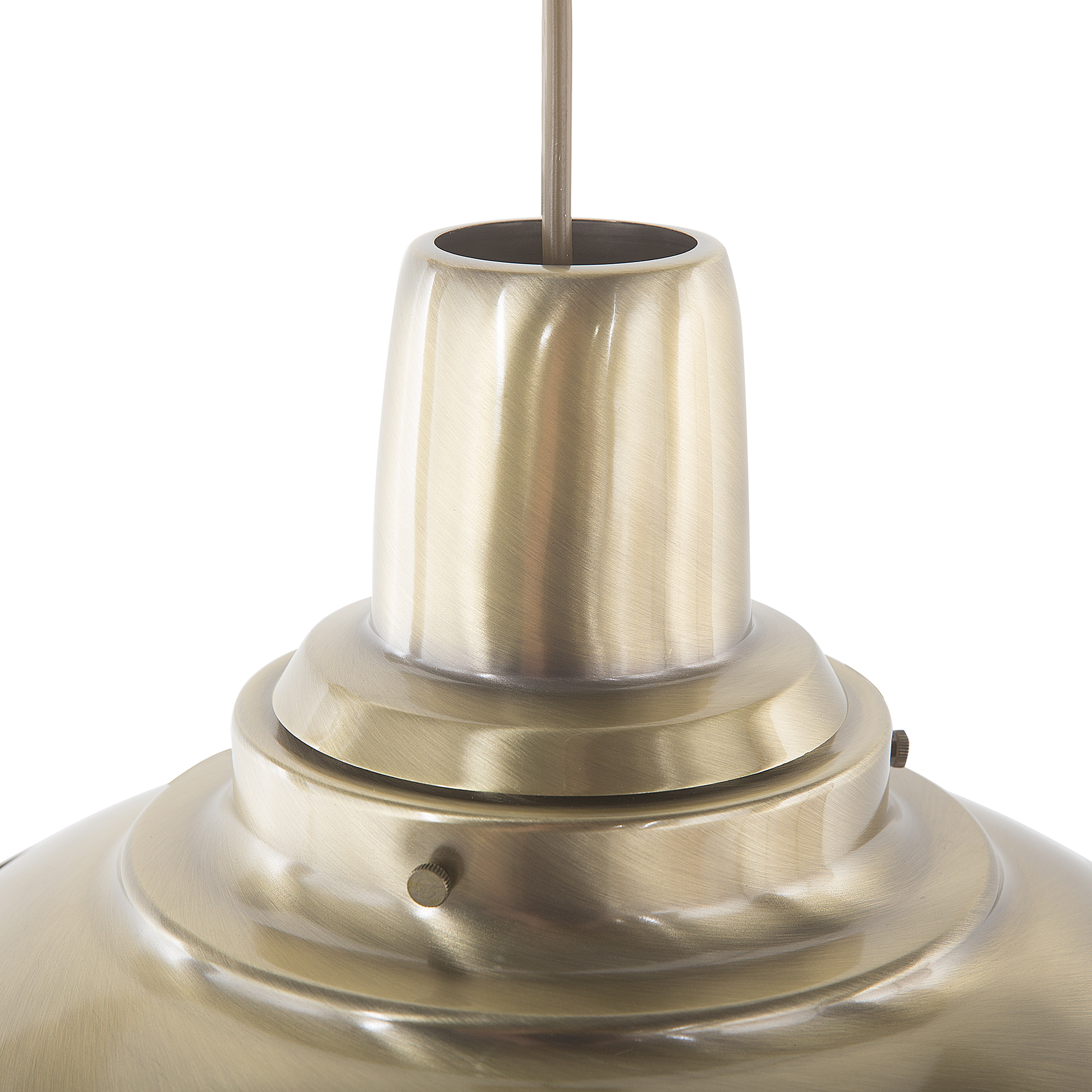 Der zeitlose Materialmix aus Glas und Metall gibt dieser Hängeleuchte eine universelle Ausstrahlung. Die klassische Form mit rundem Lampenschirm in Verbindung mit der Vintagefarbe im Messing-Look macht die Lampe zum perfekten Begleiter für Ihr Wohn- oder Esszimmer. Material: Metall. Zusätzliches Material: PVC. Gewicht: 1 Montage: Erfordert Installation und Montage Das Angebot beinhaltet: 1 x Hängeleuchte, Nicht im Lieferumfang enthalten: Leuchtmittel Höhe: 94 zusätzliche Information: Diese Leuchte ist geeignet für Leuchtmittel der Energieklassen A bis G auf einer Skala von A (sehr effizient) bis G (weniger effizient). Geeignet für: LED Leuchtmittel, Eco-Halogen Leuchtmittel, Energiesparleuchtmittel., Die Stromkabel dürfen nur von einem qualifizierten Elektriker angepasst werden. Breite: 29 Tiefe: 29 Art: Hängeleuchte Stil: Modern Allgemeine Farbe: Messing Hauptmaterial: Metall Fassung: Max. 40 W IP Protection Code: IP 20