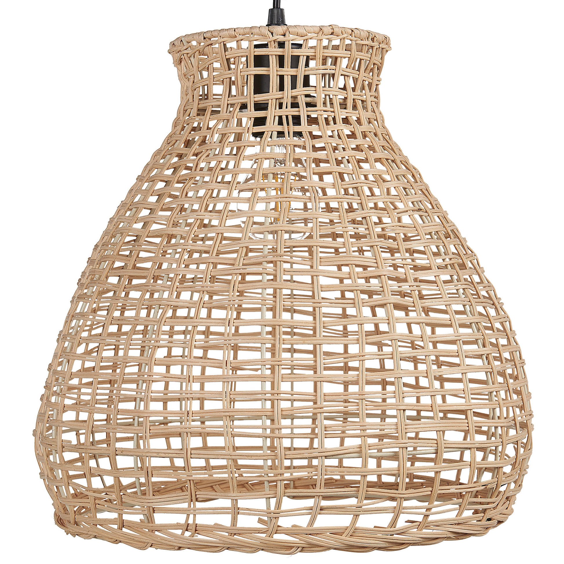 Diese handgeflochtene Hängeleuchte mit naturfarbenem Schirm verleiht jedem Interieur ein neues Flair. Durch das Rattangeflecht des Lampenschirms wirft die Leuchte ein sanftes, diffuses Licht. Mit ihrer schlichten Form und den hellen Farben ist diese Leuchte die perfekte Dekoration für jedes Esszimmer, Schlafzimmer oder Wohnzimmer. Material: Rattan. Zusätzliches Material: Metall, PVC. Gewicht: 1 Montage: Erfordert Installation und Montage Das Angebot beinhaltet: 1 x Hängeleuchte Höhe: 127 zusätzliche Information: Diese Leuchte ist geeignet für Leuchtmittel der Energieklassen A bis G auf einer Skala von A (sehr effizient) bis G (weniger effizient). Geeignet für: LED Leuchtmittel, Eco-Halogen Leuchtmittel, Energiesparleuchtmittel., Die Stromkabel dürfen nur von einem qualifizierten Elektriker angepasst werden., Hinweis! Beschädigungsgefahr! Bitte verwenden Sie keine Messer oder andere spitze oder scharfe Gegenstände, um die Verpackung zu öffnen, da das Produkt sonst beschädigt werden könnte., Da jedes Produkt handgefertigt wird, kann es zu kleineren Abweichungen in der Farbe und der äusseren Struktur kommen. Diese Abweichungen stellen keinen Qualitätsmangel dar, sondern sind eine warentypische Eigenschaft. Breite: 35 Tiefe: 35 Art: Hängelampe Stil: Boho Allgemeine Farbe: Naturfarben Hauptmaterial: Rattan Fassung: Max. 40 W IP Protection Code: IP 20