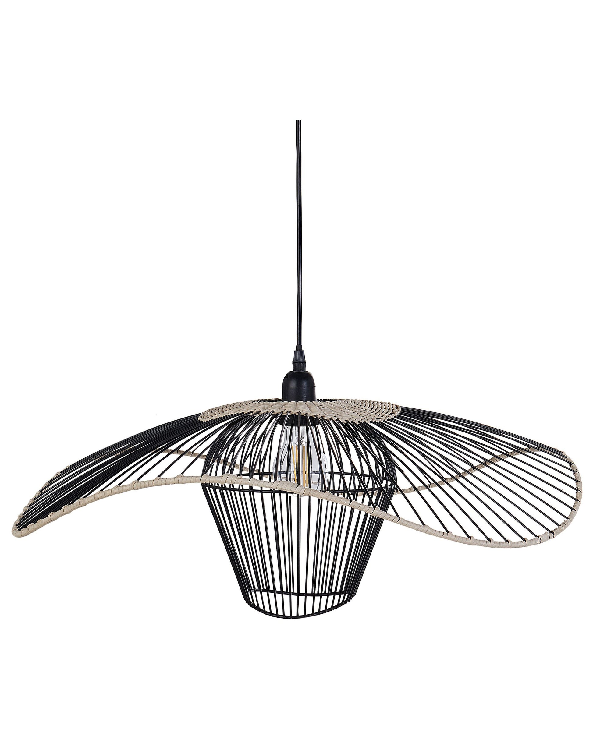 Beleuchten Sie Ihren Raum mit unserer Hängelampe, die sowohl für moderne als auch für traditionelle Wohnräume geeignet ist. Die aus leichtem Rattan und robustem Eisen gefertigte Lampe verbindet Langlebigkeit mit zeitloser Boho-Ästhetik. Ihre klassische schwarze Farbe sorgt im Wohnzimmer, Flur oder auch im Schlafzimmer für einen stilvollen Look. Material: Eisen. Zusätzliches Material: Rattan. Gewicht: 1.4 Montage: Erfordert Installation und Montage Das Angebot beinhaltet: 1 x Hängeleuchte Höhe: 110 zusätzliche Information: Diese Leuchte ist geeignet für Leuchtmittel der Energieklassen A bis G auf einer Skala von A (sehr effizient) bis G (weniger effizient). Geeignet für: LED Leuchtmittel, Eco-Halogen Leuchtmittel, Energiesparleuchtmittel., Die Stromkabel dürfen nur von einem qualifizierten Elektriker angepasst werden., Die Lampe besitzt keinen eigenen Ein/Ausschalter und benötigt daher einen separaten Schalter an der Wand, Hinweis! Beschädigungsgefahr! Bitte verwenden Sie keine Messer oder andere spitze oder scharfe Gegenstände, um die Verpackung zu öffnen, da das Produkt sonst beschädigt werden könnte., Da jedes Produkt handgefertigt wird, kann es zu kleineren Abweichungen in der Farbe und der äusseren Struktur kommen. Diese Abweichungen stellen keinen Qualitätsmangel dar, sondern sind eine warentypische Eigenschaft. Breite: 60 Tiefe: 60 Art: Hängelampe Stil: Rustikal Allgemeine Farbe: Schwarz Hauptmaterial: Eisen Fassung: 40 W