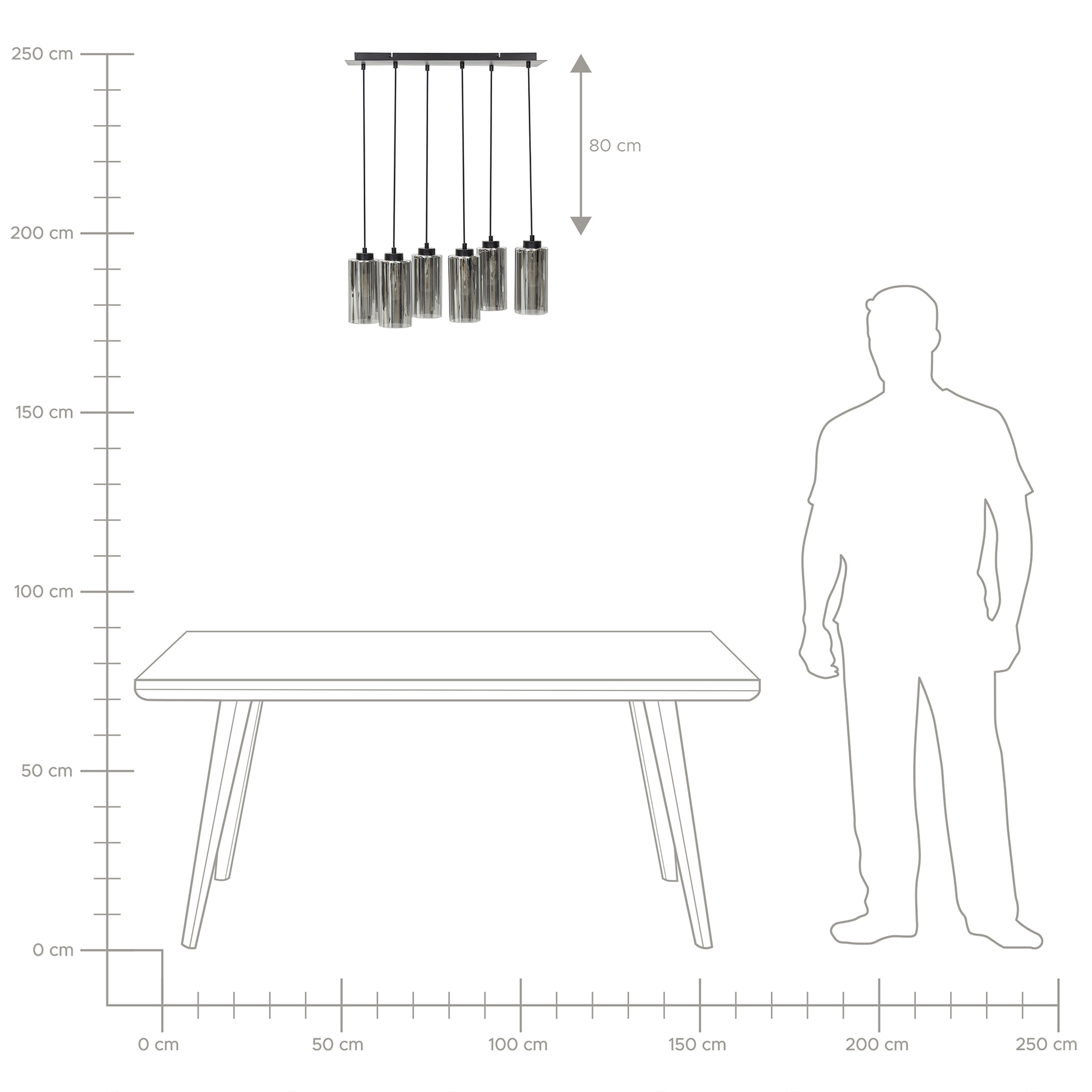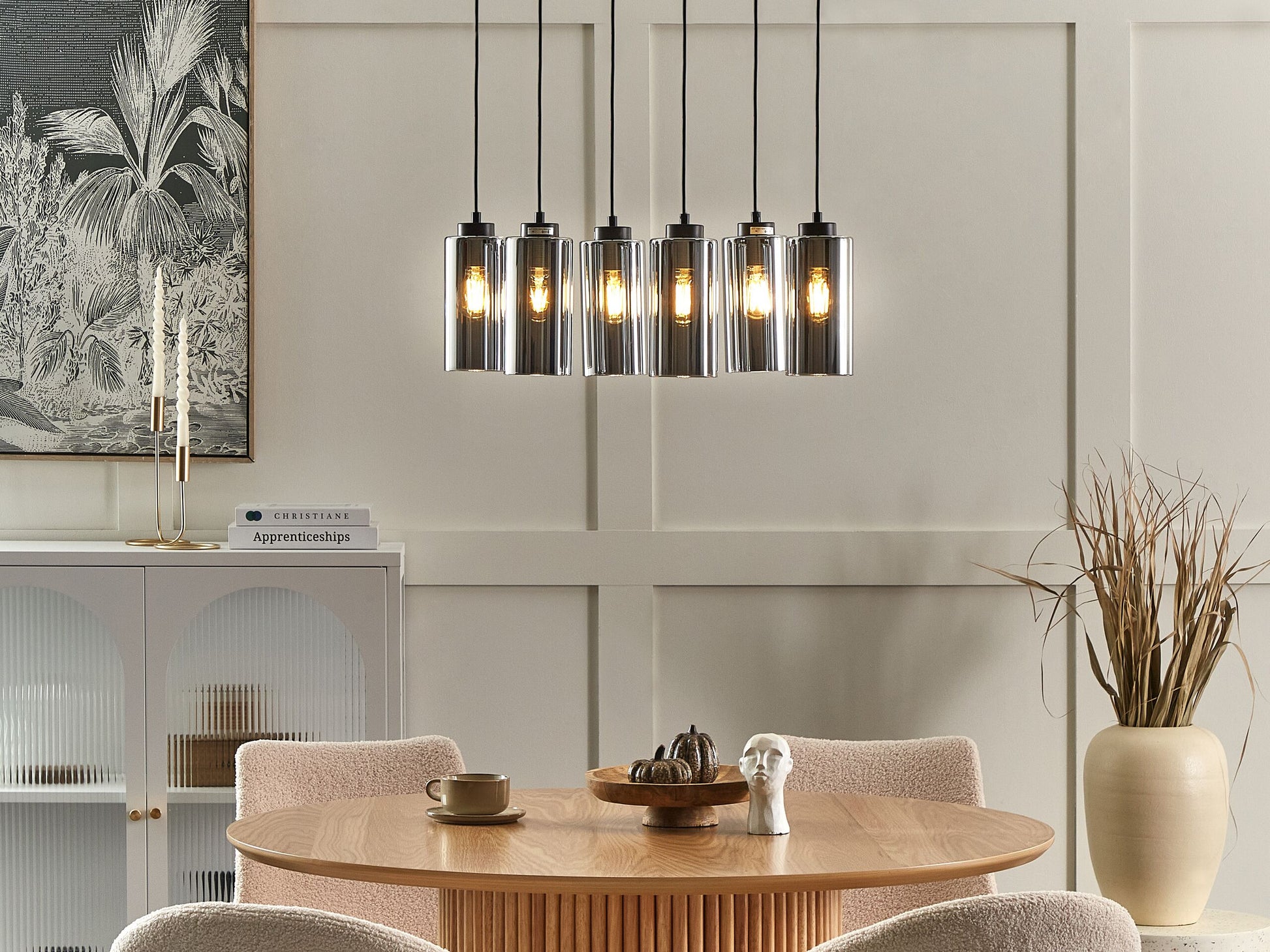 Beschreibung: Diese Hängelampe ist dank ihrer stilvollen Schirme und ihres modernen Looks die perfekte Ergänzung für Ihr Esszimmer oder Ihren Wohnbereich. Sie ist aus langlebigem Glas gefertigt und wird Ihr Zuhause für viele Jahre schmücken und dort bestimmt zum Eyecatcher werden. Ausserdem sorgen das halbdurchsichtige Design und die 6 Leuchtpunkte für eine gleichmässige Lichtverteilung im Raum, was sie zu einer guten Wahl auch für grössere Räume macht. Material: Glas. Gewicht: 4 Montage: Erfordert Installation und Montage Das Angebot beinhaltet: 1 x Hängeleuchte Höhe: 105 zusätzliche Information: Diese Leuchte ist geeignet für Leuchtmittel der Energieklassen A bis G auf einer Skala von A (sehr effizient) bis G (weniger effizient). Geeignet für: LED Leuchtmittel, Eco-Halogen Leuchtmittel, Energiesparleuchtmittel., Die Stromkabel dürfen nur von einem qualifizierten Elektriker angepasst werden. Breite: 60 Tiefe: 30 Art: Hängelampe Stil: Modern Allgemeine Farbe: Grau Hauptmaterial: Glas Fassung: 40 W IP Protection Code: IP 20