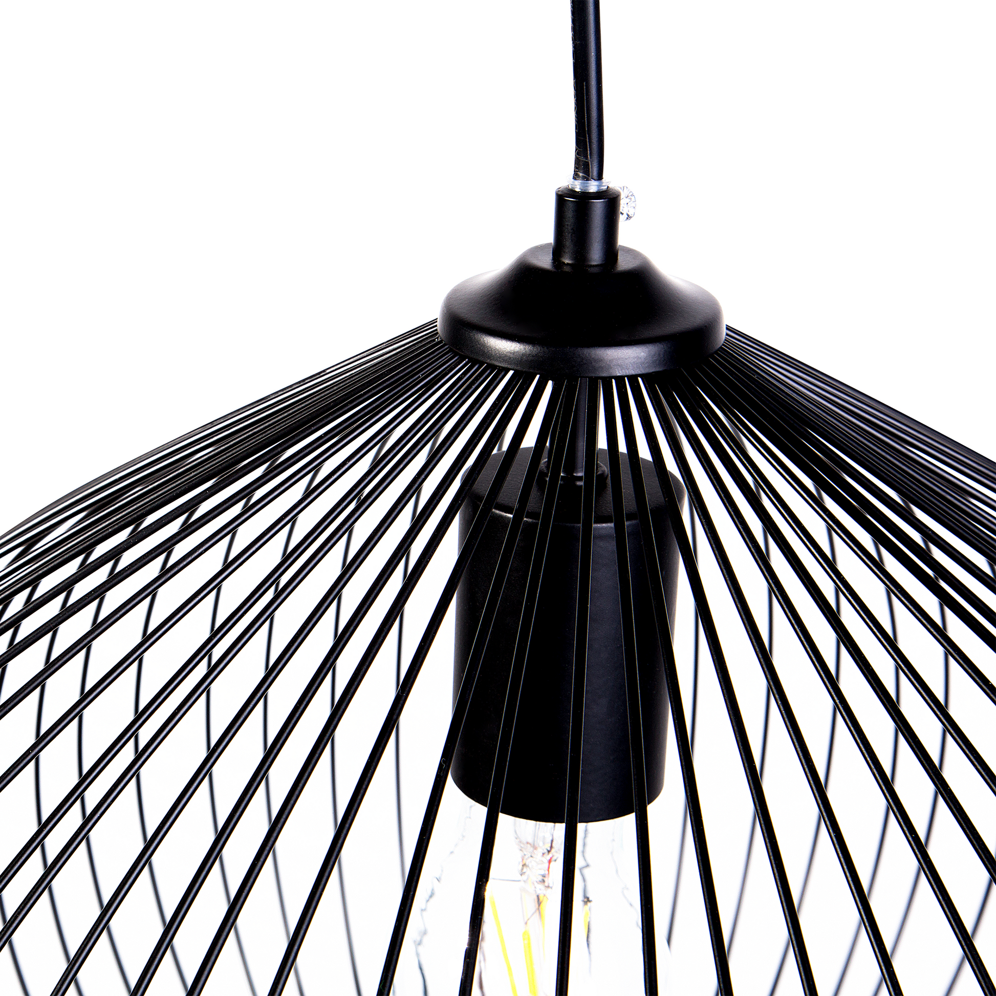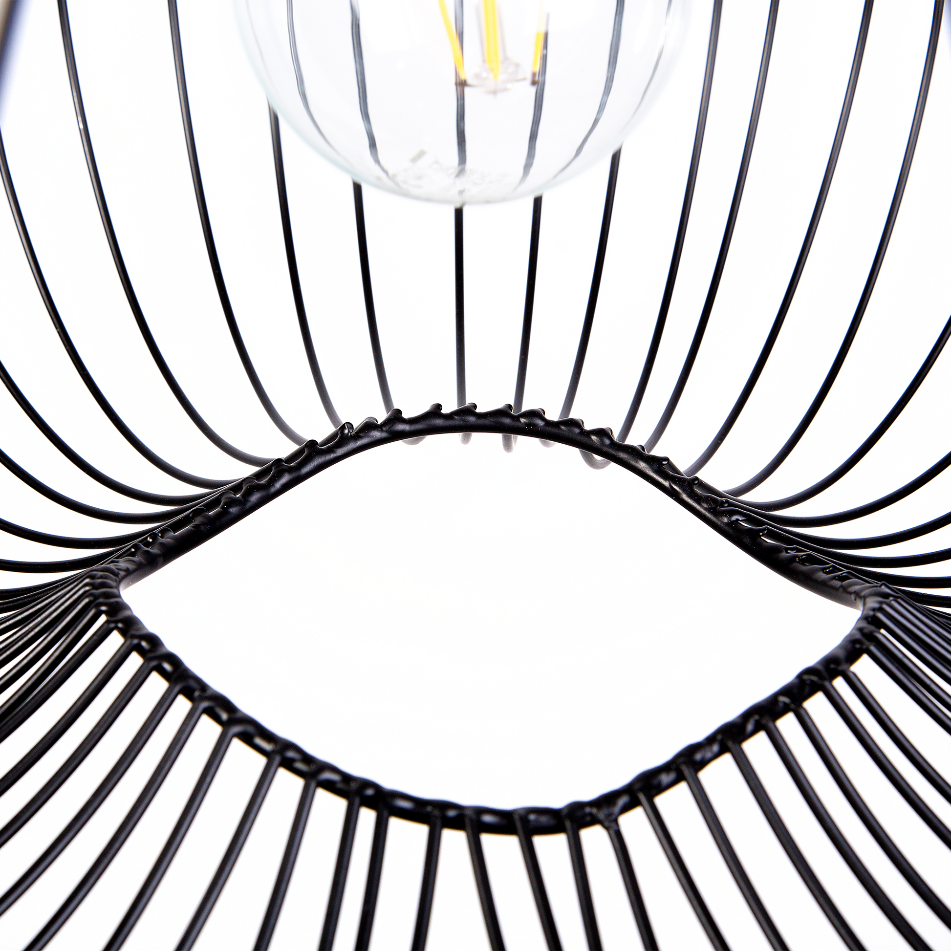 Wie ein Käfig umgibt der schwarze Lampenschirm aus schlanken Metallstreben die Glühbirne und sorgt für ein einzigartiges Licht- und Schattenspiel. Robustes Material, modernes Design und trendy Formgebung in perfekter Harmonie. Material: Eisen. Gewicht: 2 Montage: Installation benötigt Das Angebot beinhaltet: 1 x Hängeleuchte, Nicht im Lieferumfang enthalten: Leuchtmittel Höhe: 115 zusätzliche Information: Diese Leuchte ist geeignet für Leuchtmittel der Energieklassen A bis G auf einer Skala von A (sehr effizient) bis G (weniger effizient). Geeignet für: LED Leuchtmittel, Eco-Halogen Leuchtmittel, Energiesparleuchtmittel., Die Stromkabel dürfen nur von einem qualifizierten Elektriker angepasst werden. Breite: 38 Tiefe: 38 Art: Hängelampe Stil: Industriell Allgemeine Farbe: Schwarz Hauptmaterial: Eisen Fassung: Max. 60 W IP Protection Code: IP 20