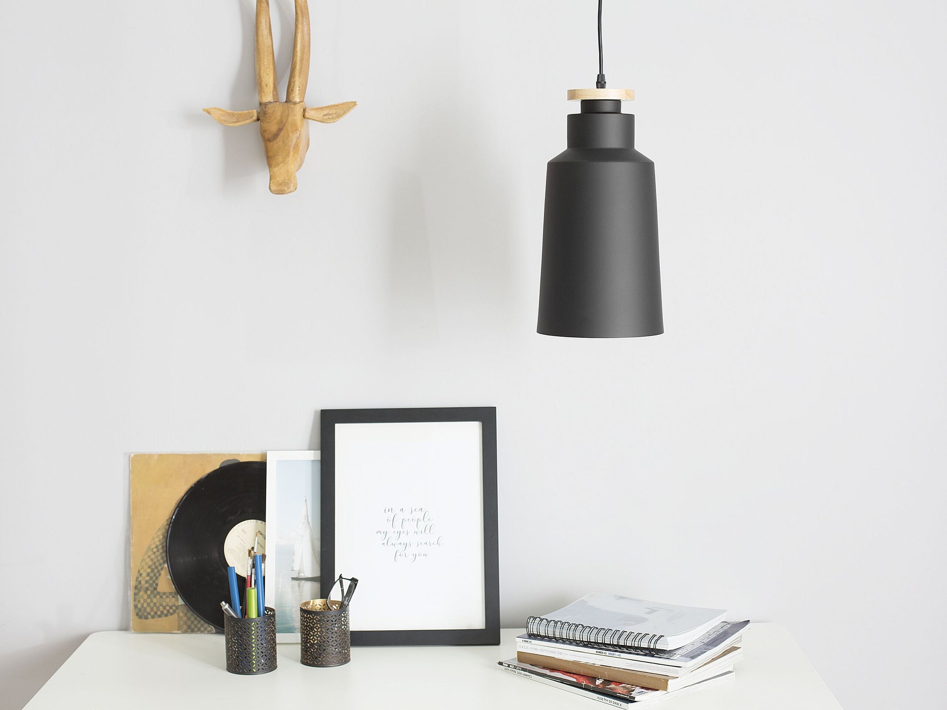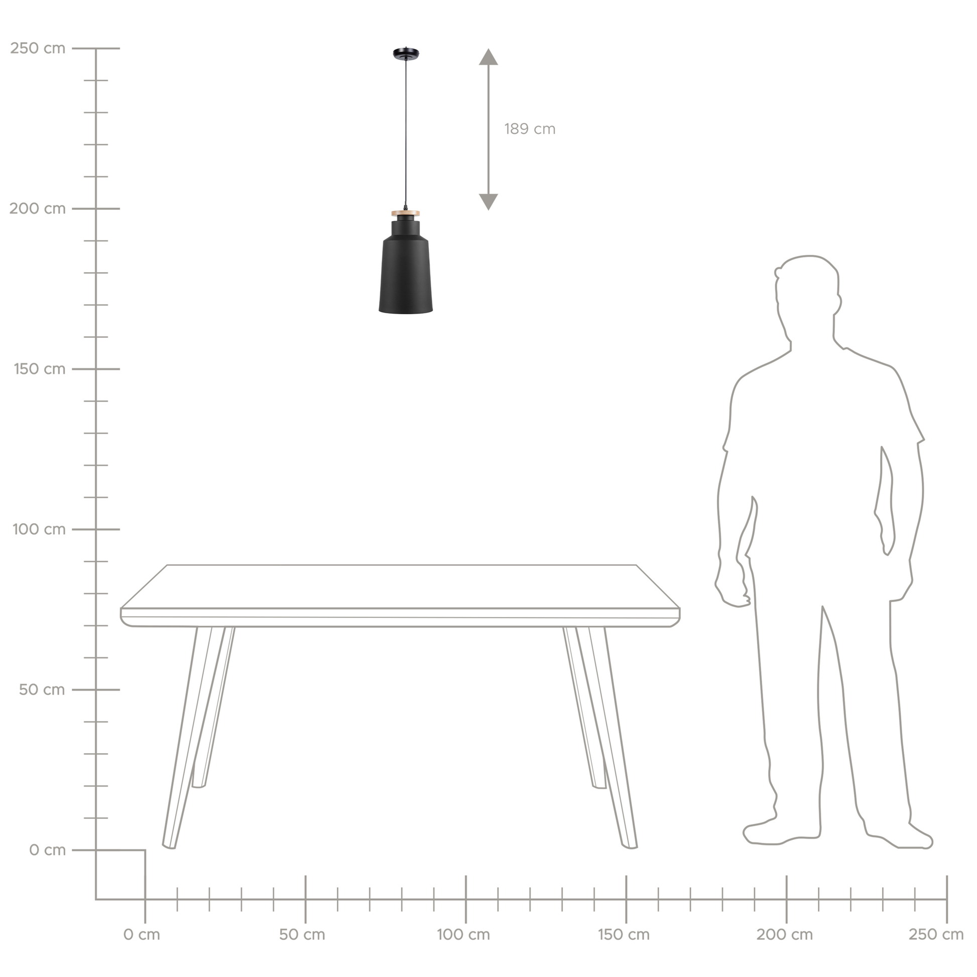 Die runde, längliche Hängeleuchte lässt sich mit ihrem modernen Design mit allen Einrichtungsstilen kombinieren. Die Aussenseite des Lampenschirms aus Aluminium ist in mattem Schwarz gehalten, die Innenseite überrascht mit strahlendem Weiss. Eine kleine, runde Holzscheibe in natürlichem Hellbraun am oberen Rand der Lampe bietet einen pfiffigen Kontrast. Material: Aluminium. Zusätzliches Material: Kunststoff. Gewicht: 1 Montage: Installation benötigt Das Angebot beinhaltet: 1 x Hängeleuchte, Nicht im Lieferumfang enthalten: Leuchtmittel Höhe: 189 zusätzliche Information: Diese Leuchte ist geeignet für Leuchtmittel der Energieklassen A bis G auf einer Skala von A (sehr effizient) bis G (weniger effizient). Geeignet für: LED Leuchtmittel, Eco-Halogen Leuchtmittel, Energiesparleuchtmittel., Die Stromkabel dürfen nur von einem qualifizierten Elektriker angepasst werden. Breite: 19 Tiefe: 19 Art: Hängeleuchte Stil: Modern Allgemeine Farbe: Schwarz Hauptmaterial: Aluminium Fassung: Max. 60 W IP Protection Code: IP 20