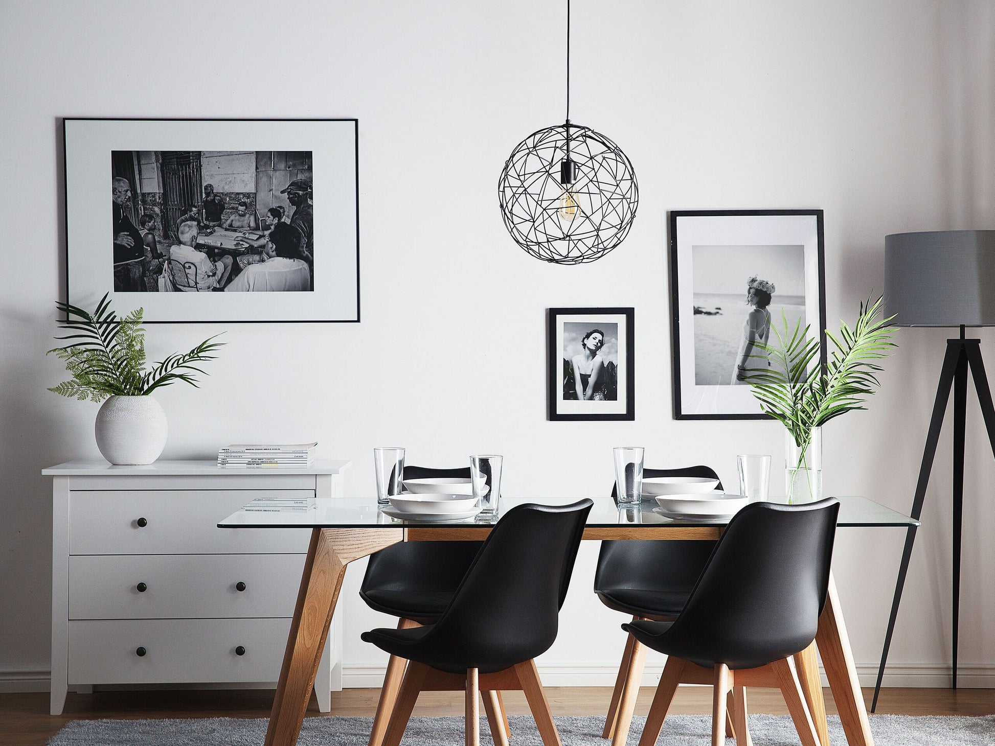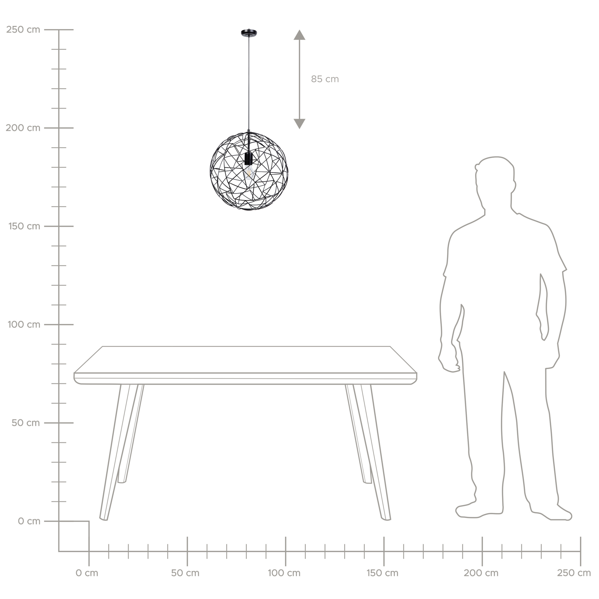 Die kugelförmige Pendelleuchte strahlt mit ihrem Netz aus glänzenden, schwarzfarbenen Metallstreben eine warme Gemütlichkeit aus. Die offene Struktur verspricht aufregende Lichteffekte. Dank ihrer vielseitigen Nutzungsmöglichkeiten kann sie in unterschiedlichen Räumen zur Geltung kommen. Material: Eisen. Zusätzliches Material: PVC. Gewicht: 2 Montage: Installation benötigt Das Angebot beinhaltet: 1 x Hängeleuchte, Nicht im Lieferumfang enthalten: Leuchtmittel Höhe: 131 zusätzliche Information: Diese Leuchte ist geeignet für Leuchtmittel der Energieklassen A bis G auf einer Skala von A (sehr effizient) bis G (weniger effizient). Geeignet für: LED Leuchtmittel, Eco-Halogen Leuchtmittel, Energiesparleuchtmittel., Die Stromkabel dürfen nur von einem qualifizierten Elektriker angepasst werden. Breite: 40 Tiefe: 40 Art: Hängelampe Stil: Industriell Allgemeine Farbe: Schwarz Hauptmaterial: Eisen Fassung: Max. 60 W IP Protection Code: IP 20
