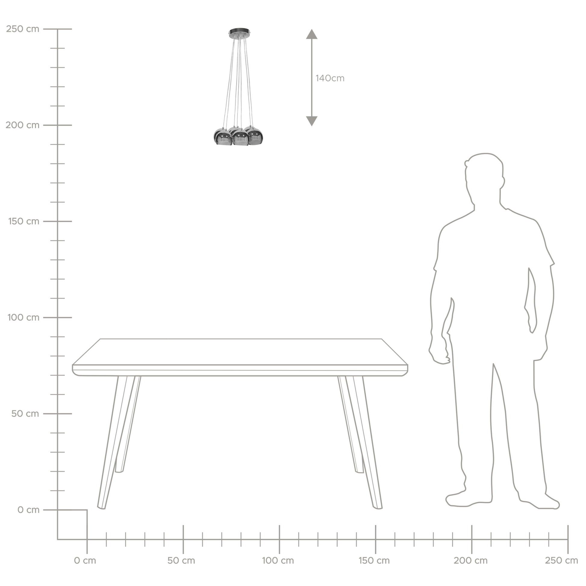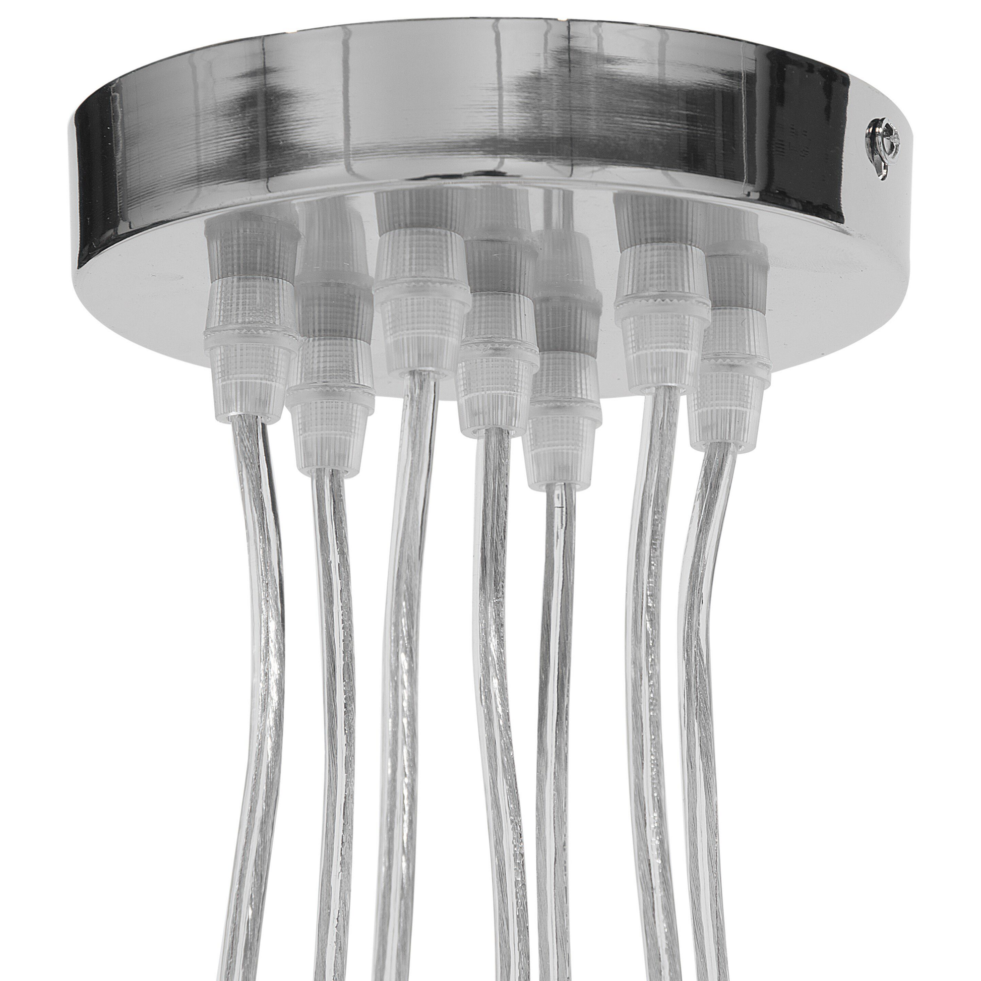 Diese Hängebeleuchtung, bestehend aus 7 Leuchtelementen, ist ein echter Hingucker in Ihrer Wohnung. Die kugelförmigen Leuchten sind aus Chrom, so dass Sie sich fast selber darin spiegeln können. Zusammen mit den transparenten Kabeln lässt das Modell Ihre Wohnung im besten Licht erstrahlen. Material: Eisen. Zusätzliches Material: Kunststoff. Gewicht: 2.5 Montage: Erfordert Installation und Montage Das Angebot beinhaltet: 1 x Hängeleuchte, Nicht im Lieferumfang enthalten: Leuchtmittel Höhe: 159 zusätzliche Information: Diese Leuchte ist geeignet für Leuchtmittel der Energieklassen A bis G auf einer Skala von A (sehr effizient) bis G (weniger effizient). Geeignet für: LED Leuchtmittel, Eco-Halogen Leuchtmittel, Energiesparleuchtmittel., Die Stromkabel dürfen nur von einem qualifizierten Elektriker angepasst werden. Breite: 14 Tiefe: 14 Art: Hängelampe Stil: Modern Allgemeine Farbe: Silber Hauptmaterial: Eisen Fassung: Max. 25 W IP Protection Code: IP 20
