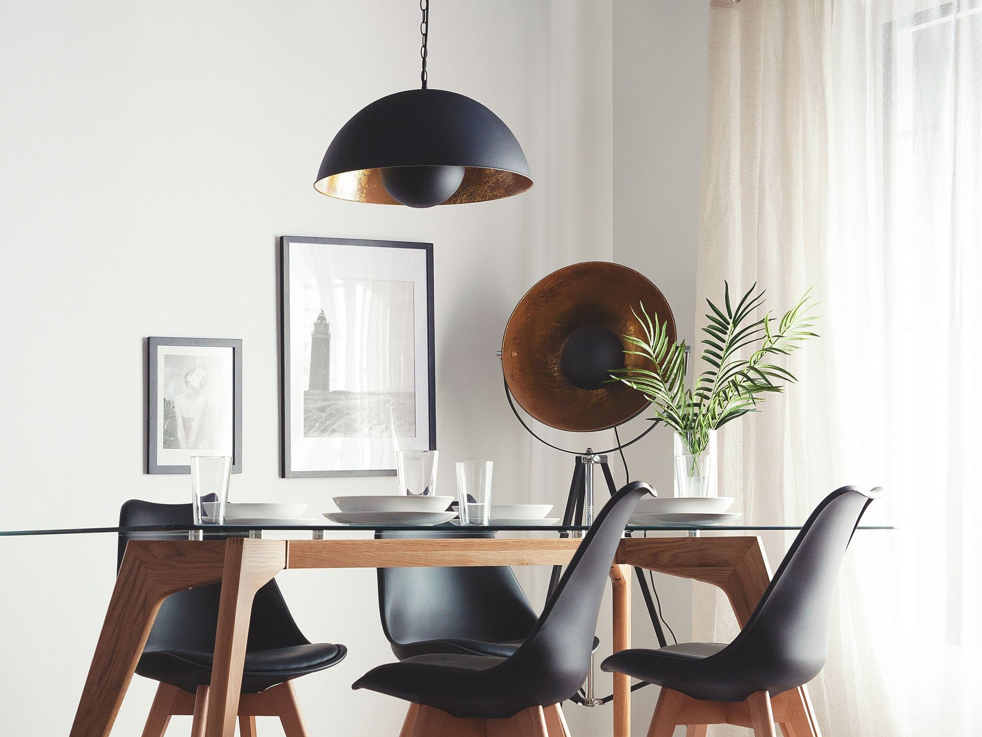 Die runde Hängeleuchte ist dank ihres modernen Designs ein echter Hingucker. Der runde, gebogene Lampenschirm aus robustem Metall hat eine matte, schwarze Aussenseite, die in wunderschönem Kontrast steht zu seiner glänzenden, goldenen Innenseite. Die Lampe schenkt Ihnen einen indirekten, reflektierenden Lichtschein dank einer matt-schwarzen, gebogenen Abdeckung auf der Innenseite, hinter der sich die Glühbirne befindet. Licht ohne zu blenden. Eine robuste, schwarze Metallkette als Aufhängung rundet das Design ab. Material: Metall. Zusätzliches Material: PVC. Gewicht: 3.5 Montage: Erfordert Installation und Montage Das Angebot beinhaltet: 1 x Hängeleuchte, Nicht im Lieferumfang enthalten: Leuchtmittel Höhe: 158 zusätzliche Information: Diese Leuchte ist geeignet für Leuchtmittel der Energieklassen A bis G auf einer Skala von A (sehr effizient) bis G (weniger effizient). Geeignet für: LED Leuchtmittel, Eco-Halogen Leuchtmittel, Energiesparleuchtmittel., Die Stromkabel dürfen nur von einem qualifizierten Elektriker angepasst werden. Breite: 50 Tiefe: 50 Art: Hängelampe Stil: Industriell Allgemeine Farbe: Schwarz Hauptmaterial: Metall Fassung: Max. 40 W IP Protection Code: IP 20