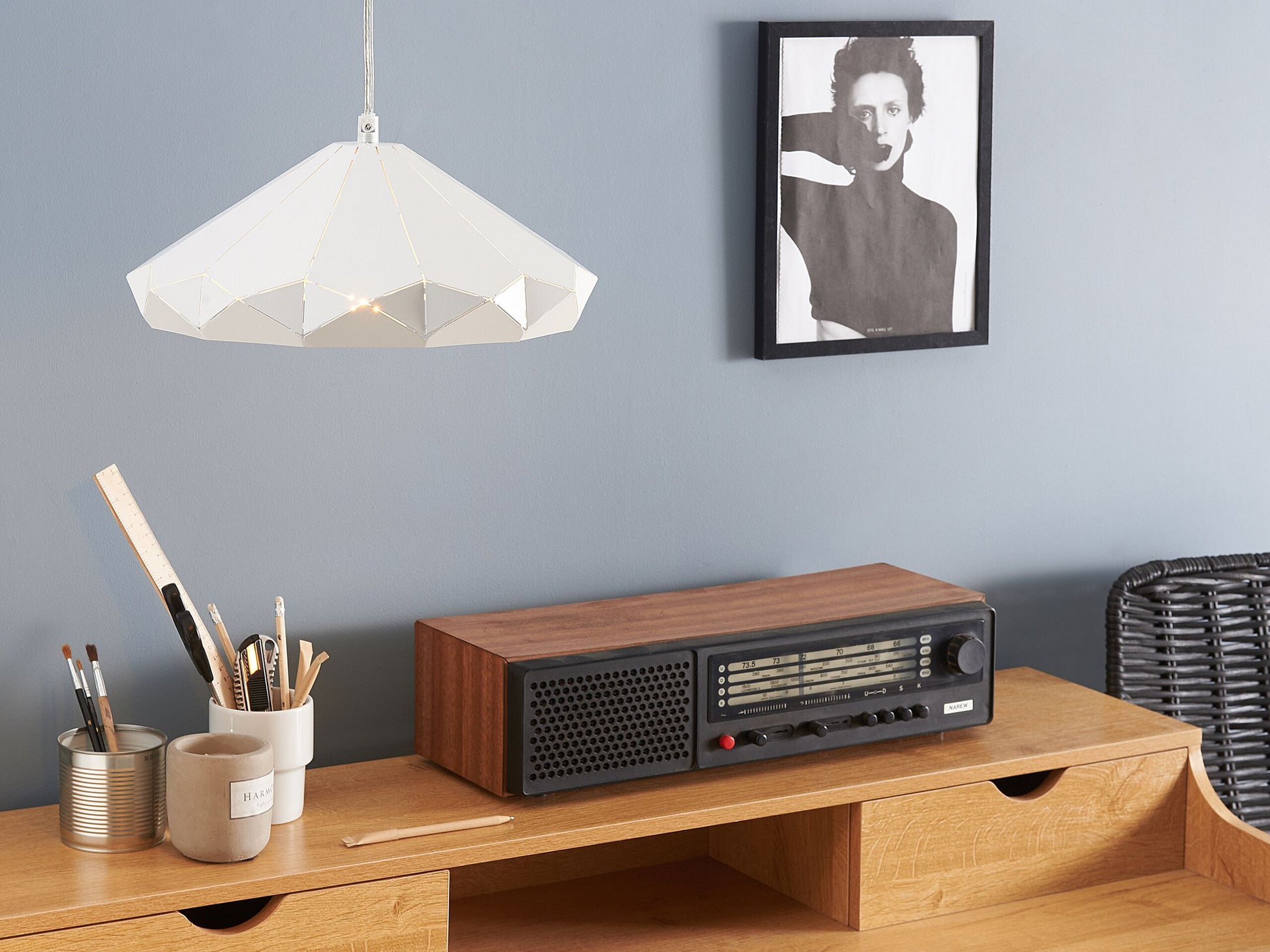 Eine schöne Pendelleuchte gehört einfach zu einem ausgewogenen Beleuchtungskonzept dazu, und diese Lampe setzt Ihre Räume ins beste Licht. Die schlichte, runde Form wird durch eine expressive Falt-Optik ergänzt, und mit ihrem dezenten Weiss passt sie zu allen modernen Wohnstilen. Der Lampenschirm ist aus robustem Metall gefertigt und lässt sich in allen Wohn- und Arbeitsbereichen inszenieren. Die Leuchte ist mit einem transparenten PVC Kabel ausgestattet. Material: Eisen. Zusätzliches Material: PVC. Gewicht: 1 Montage: Installation benötigt Das Angebot beinhaltet: 1 x Hängeleuchte, Nicht im Lieferumfang enthalten: Leuchtmittel Höhe: 112 zusätzliche Information: Diese Leuchte ist geeignet für Leuchtmittel der Energieklassen A bis G auf einer Skala von A (sehr effizient) bis G (weniger effizient). Geeignet für: LED Leuchtmittel, Eco-Halogen Leuchtmittel, Energiesparleuchtmittel., Die Stromkabel dürfen nur von einem qualifizierten Elektriker angepasst werden. Breite: 27 Tiefe: 27 Art: Hängelampe Stil: Modern Allgemeine Farbe: Weiss Hauptmaterial: Eisen Fassung: Max. 40 W IP Protection Code: IP 20