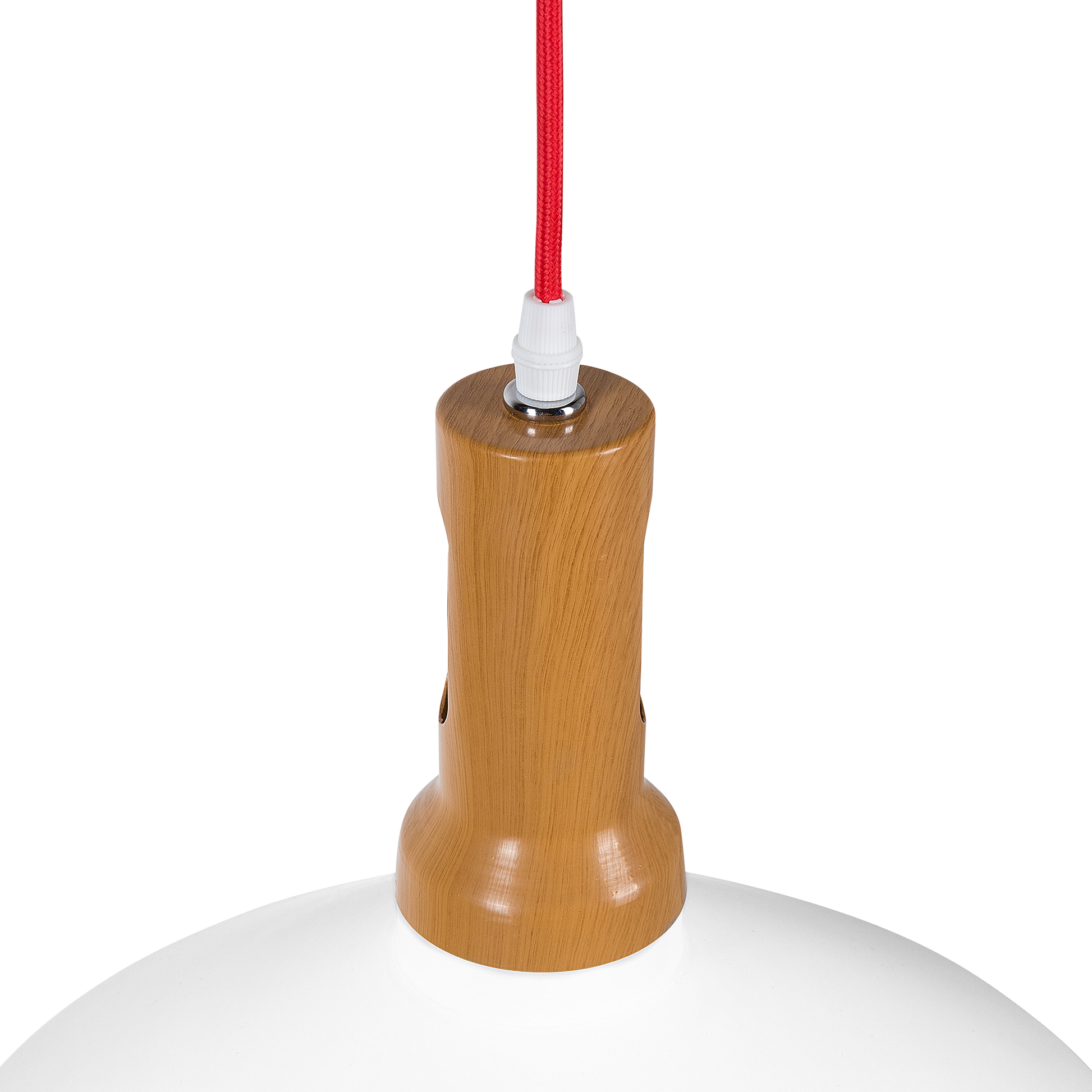 Die runde Hängeleuchte präsentiert sich mit einem wunderschönen Kontrast aus mattem Weiss mit glänzendem Gold an der Innenseite des Lampenschirms, wodurch sie einen warmen, wunderschönen Lichtschein an Ihre Wände zaubert. Die Spitze aus hellem Kunstoff in Holz-Optik bietet einen interessanten Kontrast. Mit ihrer zeitlos eleganten Ausstrahlung ist sie eine vielseitige Ergänzung für alle Wohn- und Arbeitsbereiche und sie passt hervorragend zu allen Einrichtungsstilen. Material: Aluminium. Zusätzliches Material: Kunststoff. Gewicht: 1 Montage: Erfordert Installation und Montage Das Angebot beinhaltet: 1 x Hängeleuchte, Nicht im Lieferumfang enthalten: Leuchtmittel Höhe: 183 zusätzliche Information: Diese Leuchte ist geeignet für Leuchtmittel der Energieklassen A bis G auf einer Skala von A (sehr effizient) bis G (weniger effizient). Geeignet für: LED Leuchtmittel, Eco-Halogen Leuchtmittel, Energiesparleuchtmittel., Die Stromkabel dürfen nur von einem qualifizierten Elektriker angepasst werden. Breite: 34 Tiefe: 34 Art: Hängelampe Stil: Modern Allgemeine Farbe: Weiss Hauptmaterial: Aluminium Fassung: Max. 60 W IP Protection Code: IP 20
